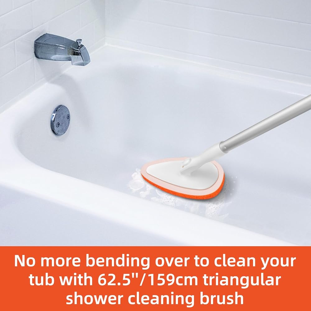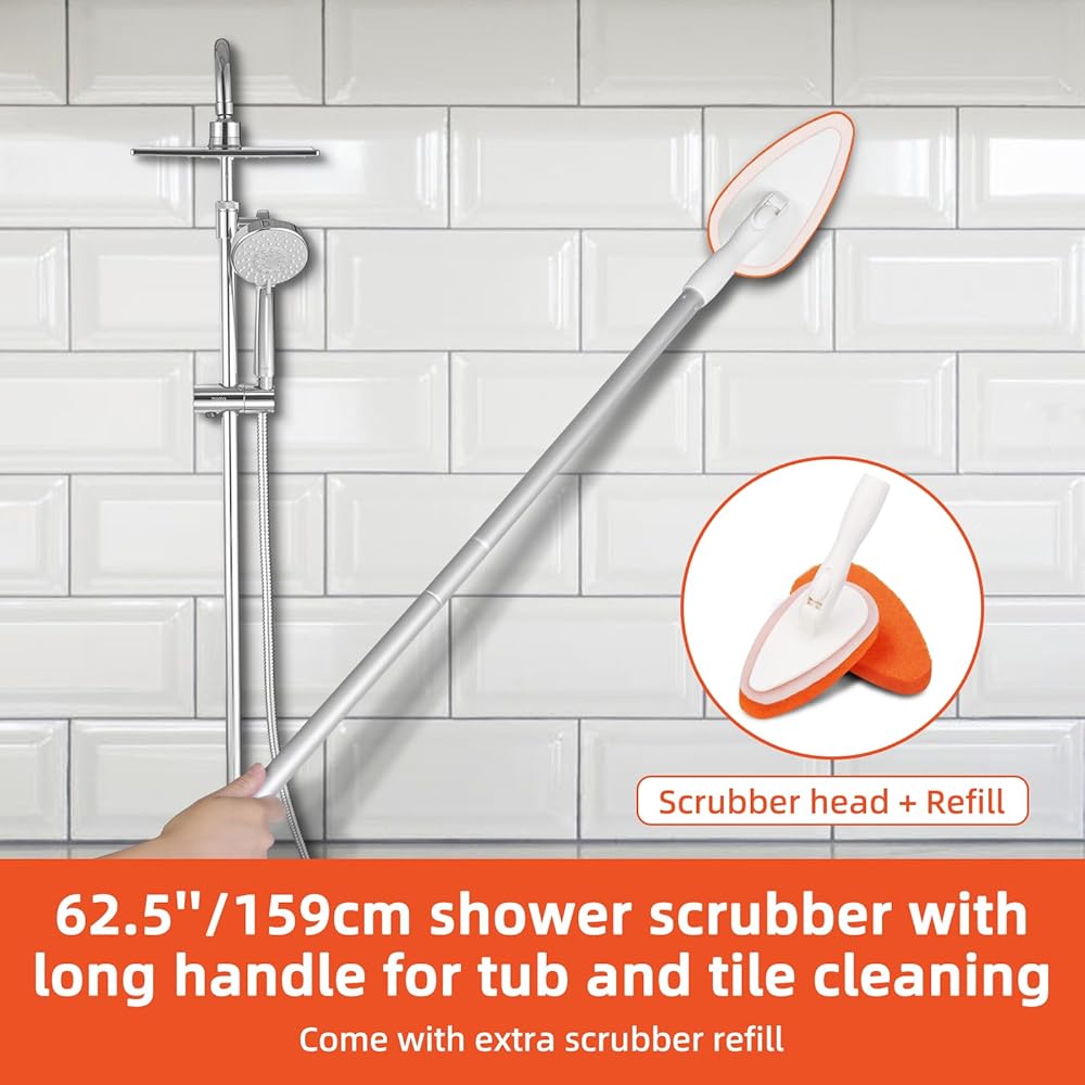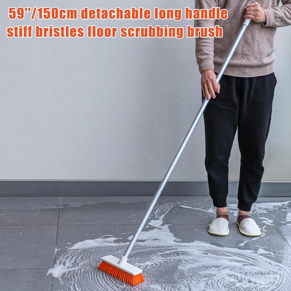 فرشاة تنظيف حوض الاستحمام وفرشاة تنظيف الأرضية من كيستفي بمقبض طويل قابل للفصل مقاس 62.5 بوصة، و2 فرشاة حمام وفرشاة تنظيف أرضية لتنظيف بلاط حوض الاستحمام - مجموعة 2 في 1