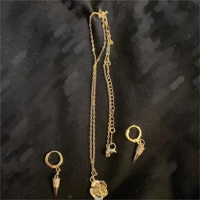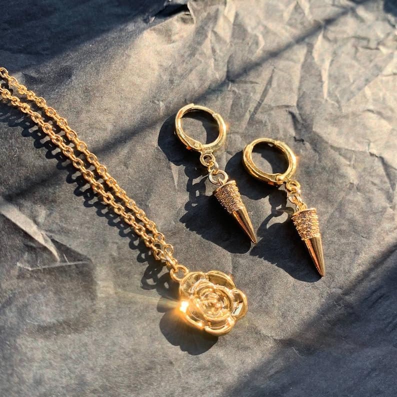 أكسسوارات مثالية للكوس: هذه الأقراط الذهبية للعائلة وقلادة زهرة الورد مصنوعة من النحاس، إذا كنت ستذهب إلى أميرة ثورن، فستحتاج إليها لتتماشى مع زيك.