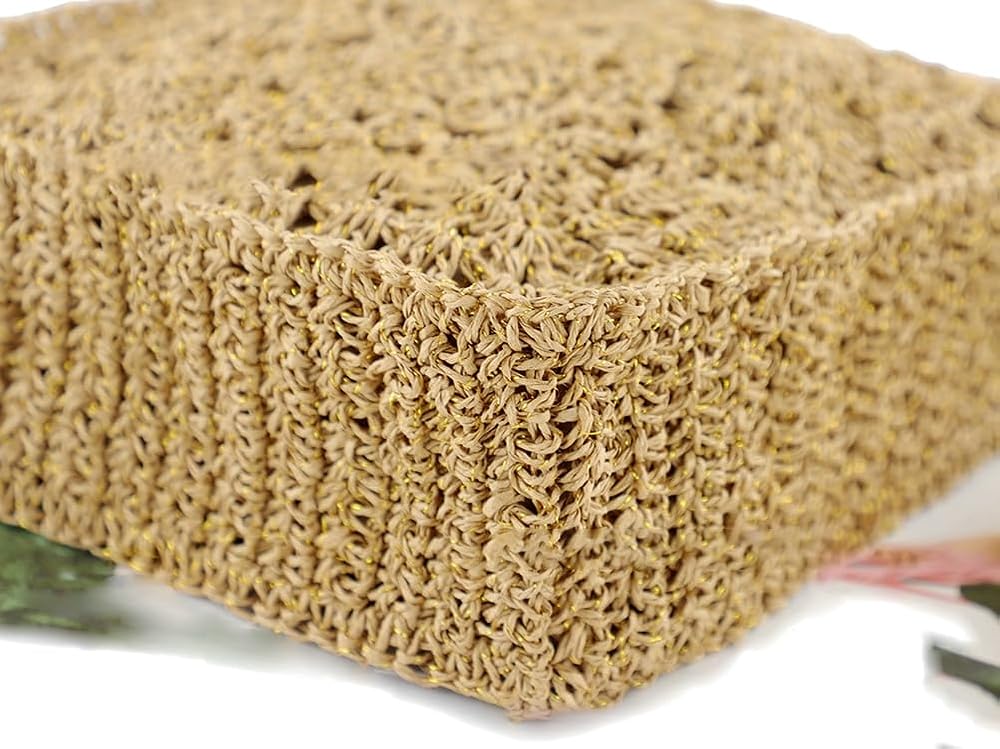محفظة كتف نسائية كبيرة بتصميم زهور من القش مزودة بسحاب للإغلاق، وحجرة رئيسية، وواسعة بما يكفي لتخزين ضرورياتك اليومية. اجعل محفظتك والهاتف المحمول ومستحضرات التجميل وغيرها من الملحقات منظمة بشكل جيد.