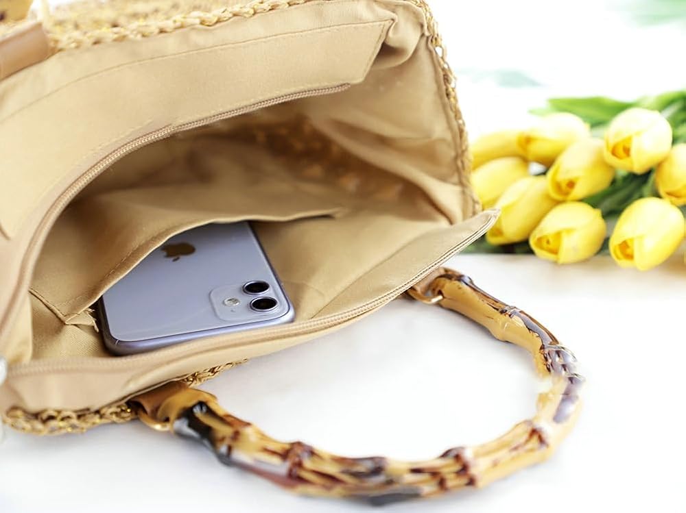تصميم فريد وكلاسيكي: تتميز حقائب اليد الصيفية ذات القش على الشاطئ بأنها كاجوال وخفيفة الوزن وناعمة. مثالي لحفلات الشاطئ وحمام السباحة والعمل والتسوق والسفر والحياة اليومية. مع بطانة من القماش الناعم. يحافظ على ممتلكاتك آمنة، يومًا بعد يوم.