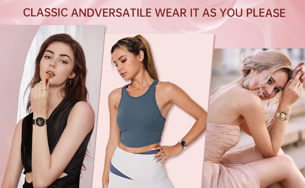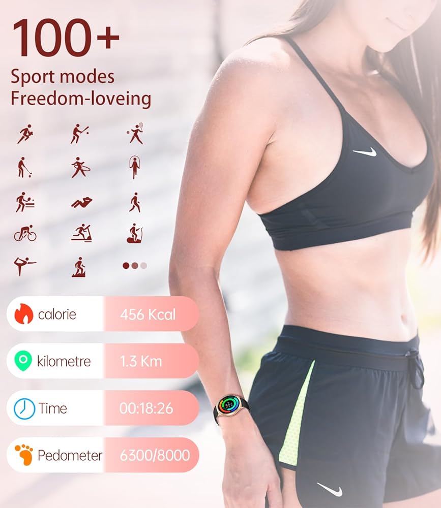 【العناية الصحية الشاملة】: الساعات المقاومة للماء للنساء تعمل كمستشار صحي حميم، الساعات الذكية ليست فقط أجهزة تتبع جودة النوم وأجهزة مراقبة معدل ضربات القلب، ولكنها أيضًا ساعة ضغط الدم. تم تصميم هذه السلسلة من ميزات الحماية الصحية لإيقاظ صحتك. تحتوي الساعات الصحية للنساء على تذكير مستقر وتذكير بالترطيب وصحة المرأة لخلق نمط حياة أكثر صحة وراحة لك. (ملاحظة: البيانات مرجعية فقط وليست بديلاً عن الاستشارة الطبية)