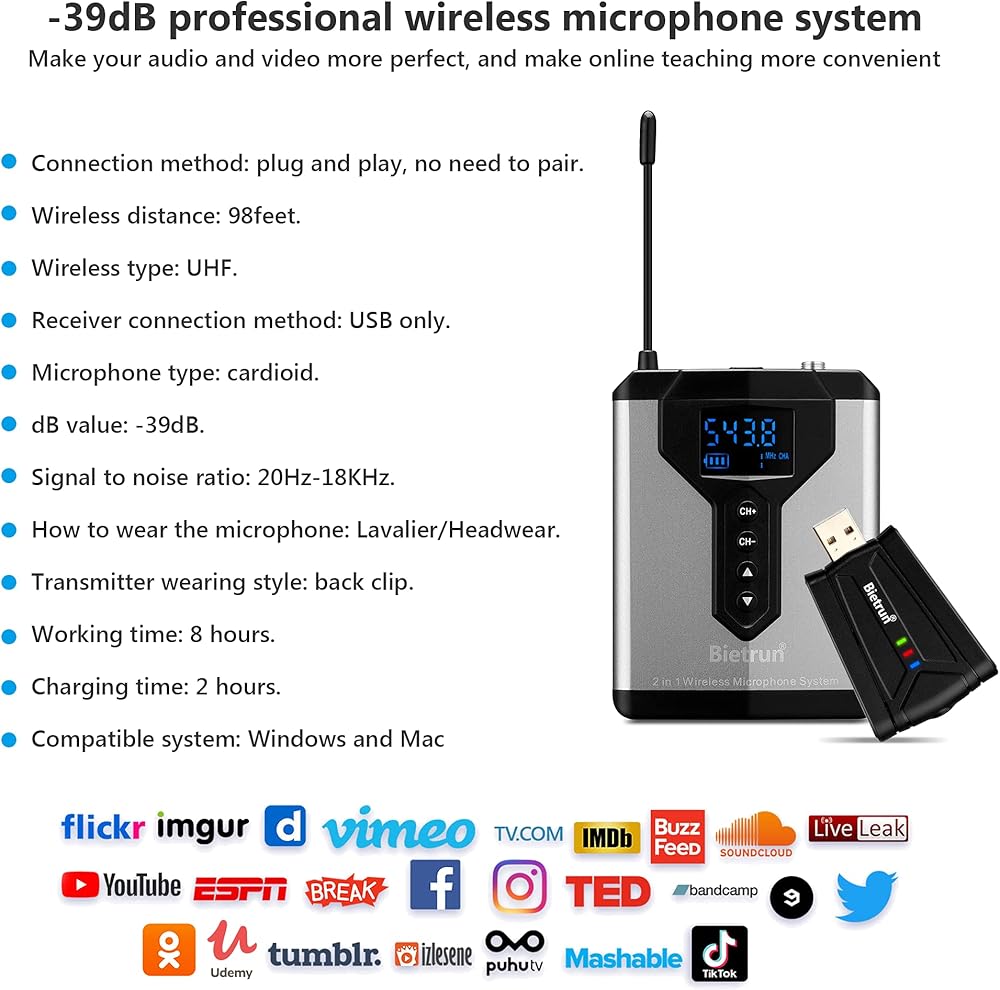 【توصيل وتشغيل مجاني】: ● فقط قم بتوصيل جهاز الاستقبال بمنفذ USB للكمبيوتر وانتظر حتى يقوم الكمبيوتر بتثبيت برنامج التشغيل تلقائيًا ويمكنك استخدامه. متوافق مع ويندوز 7/8/10/11/لينكس/ماكوس. ●تم ضبط إعدادات صوت نظام الكمبيوتر لمدخل الميكروفون على "2-بيترون 4" للاستخدام. ● أو قم بتوصيل مكبرات الصوت بمدخل USB لمدربي اللياقة البدنية والمدربين والمروجين وما إلى ذلك.