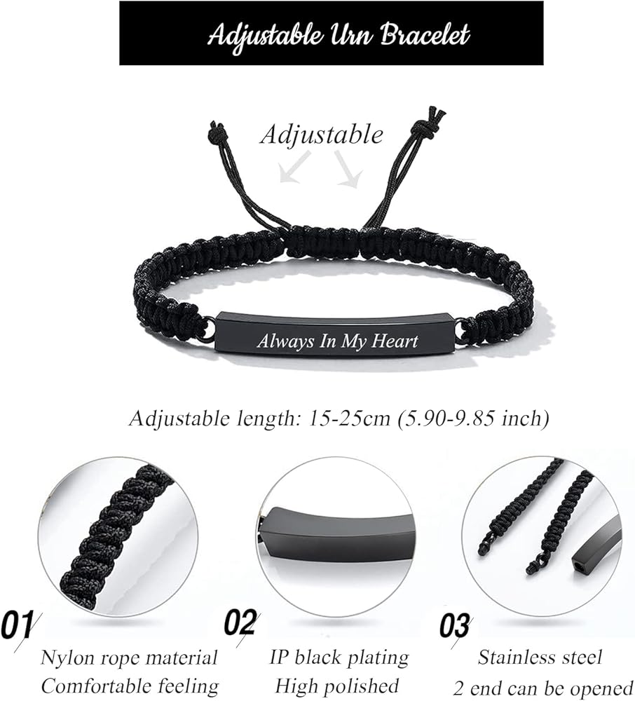Having Cremation Ashes Jewelry Means You Always Have a Part of Your Loved One with You While death is not something that most people enjoy talking about, it is, in fact, part of life and everything that is living will eventually die. Helping the healing with cremation jewelry It is a very wonderful choice that many families choose especially if several members of the family want to keep the urn, byusing cremation jewelry, each family member can have a part of their loved one with them at all times. Memorial Keepsake Cremation Jewelry for Ashes Bracelet - Adjustable