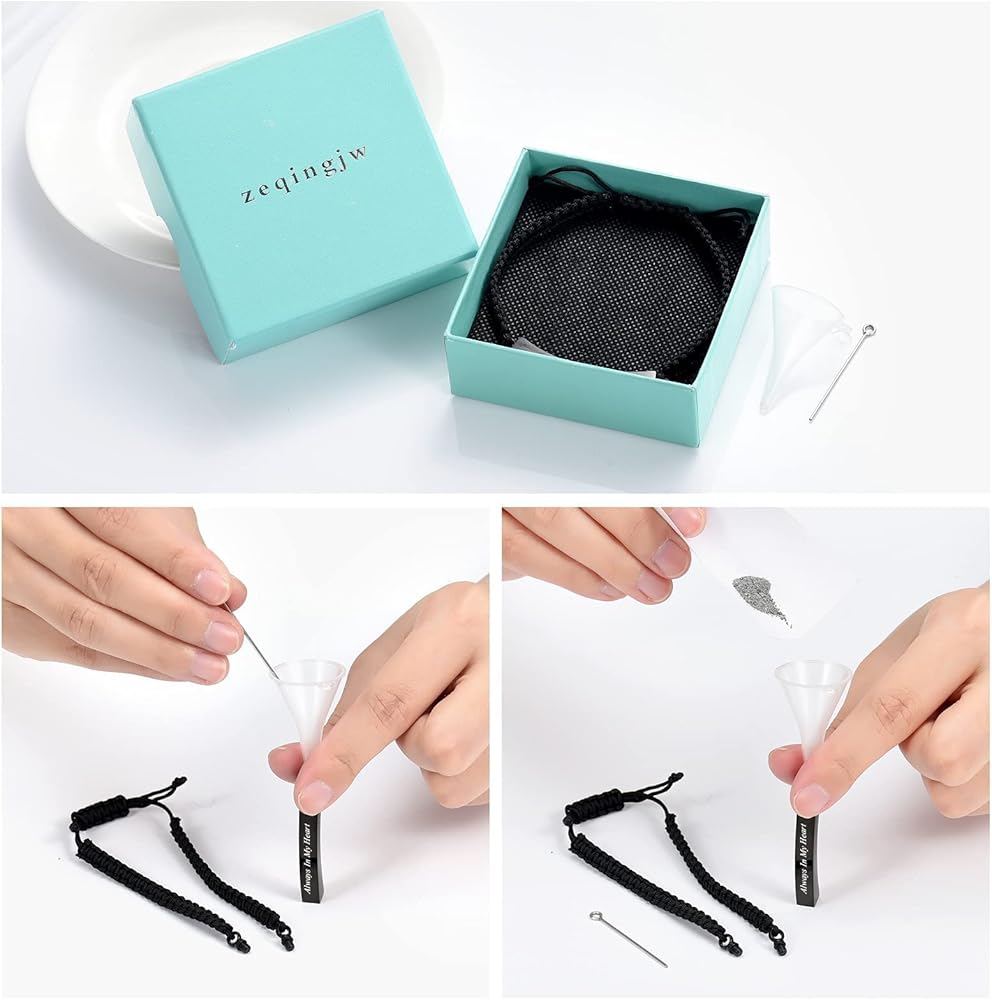 💗【Cremation Bracelet Package】Including a beautiful green gift box printed with Brand Name "zeqingjw". And filling kit. Easy to fill up the urn bracelet.