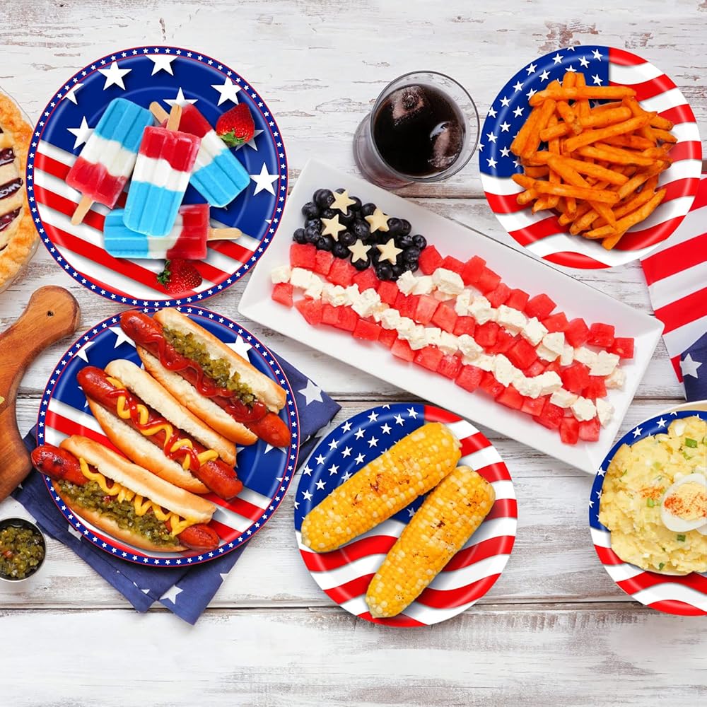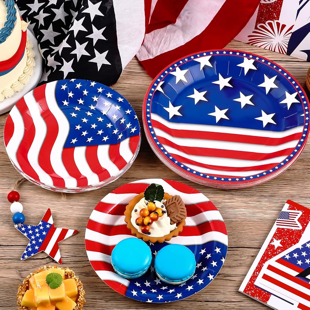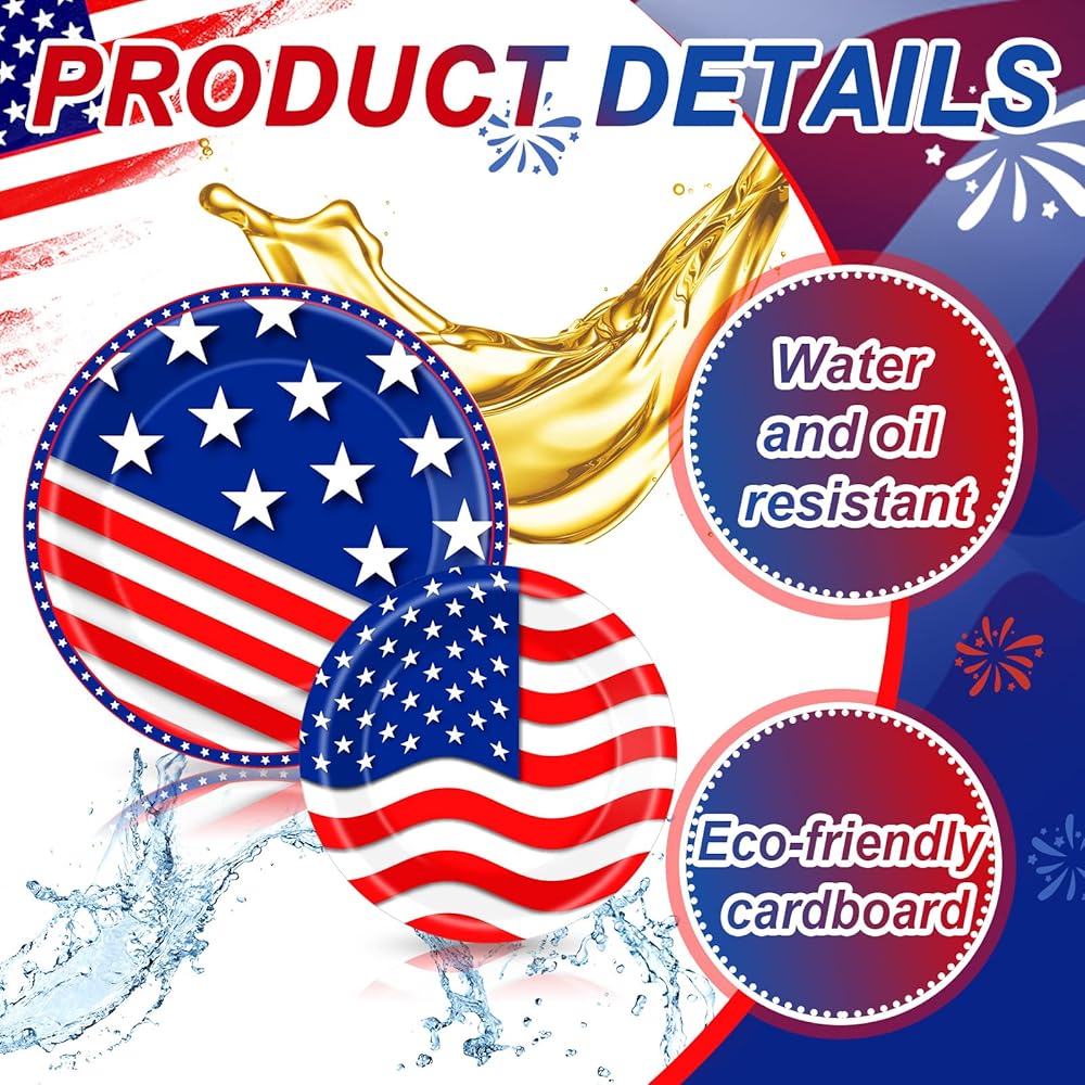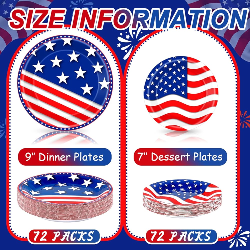 144 Pcs 4th of July Plates: the package includes 144 pieces of 4th of July plates in 2 sizes (7 inch and 9 inch), 72 pieces for each size, enough for holiday parties or other outdoor activities