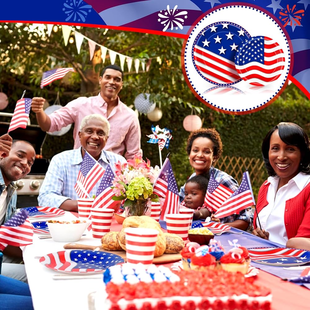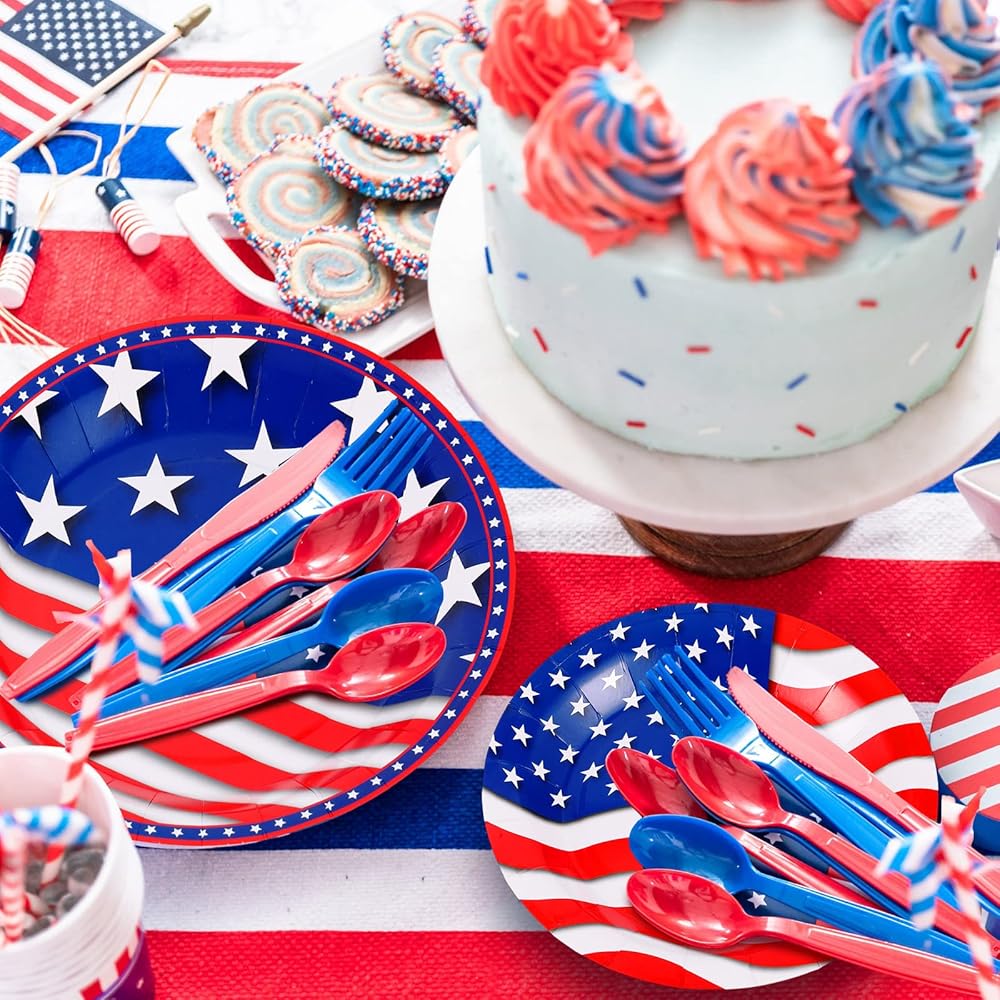 Exquisite American Flag Design: our patriotic party supplies use the classic American flag, which will immediately decorate any party table; These American flag patriotic disposable tableware sets can be applied for patriotic parties, patriotic party decorations and 4th of July party decorations to surprise your guests and add a patriotic atmosphere to the Independence Day party, making your party more interesting, attractive and impressive