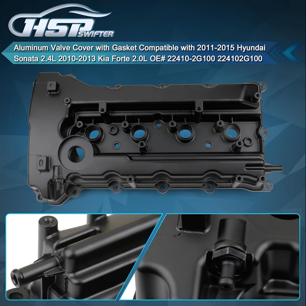 غطاء صمام ألومنيوم مع حشية متوافق مع 2011-2015 Hyundai Sonata 2.4L 2010-2013 Kia Forte 2.0L OE # 22410-2G100 224102G100