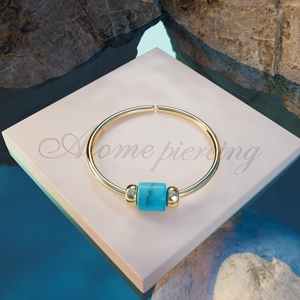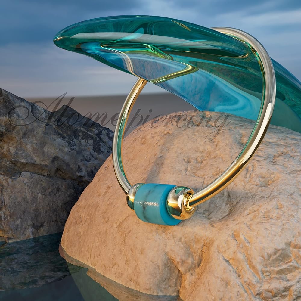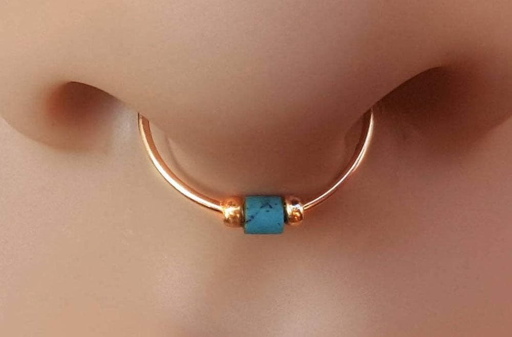 حلقة الحاجز - حلقة حاجز صغيرة باللون الفيروزي مقاس 22 - حلقة حاجز مطرزة بالذهب عيار 14 قيراط - طوق الحاجز