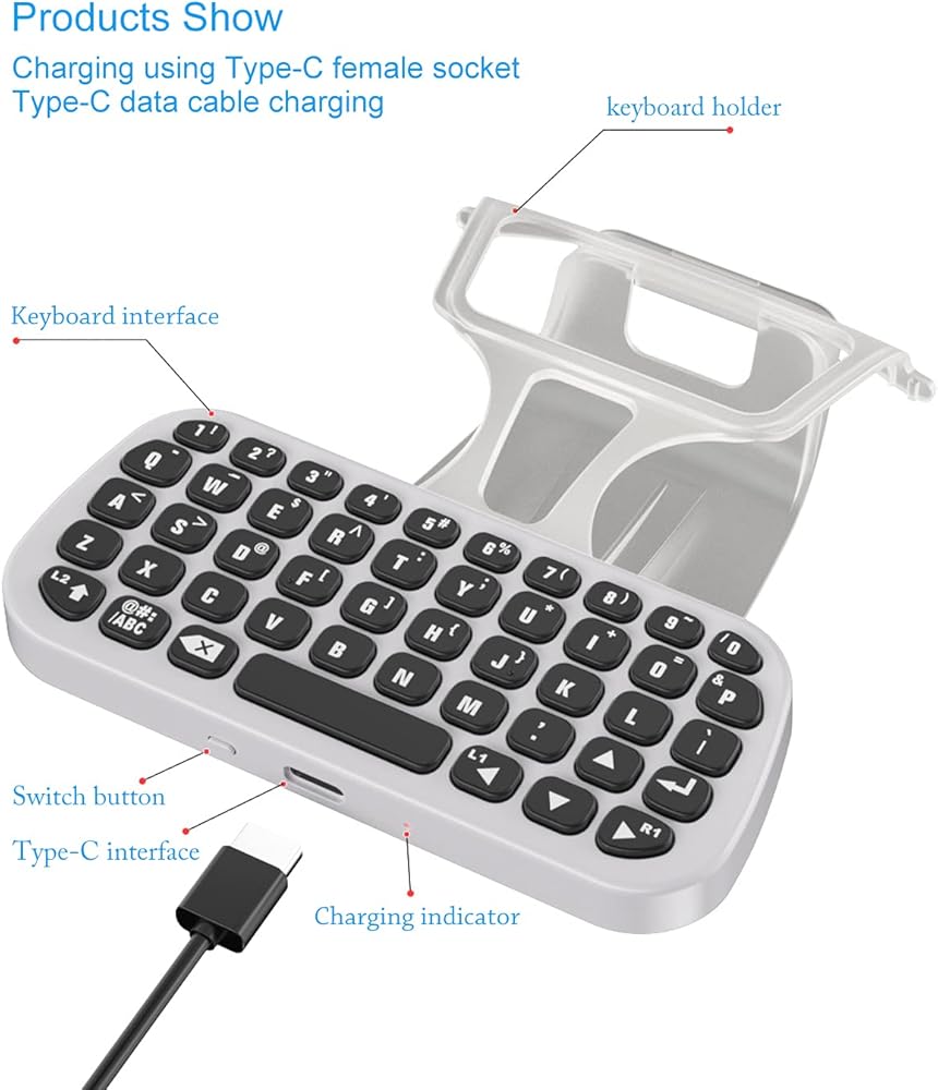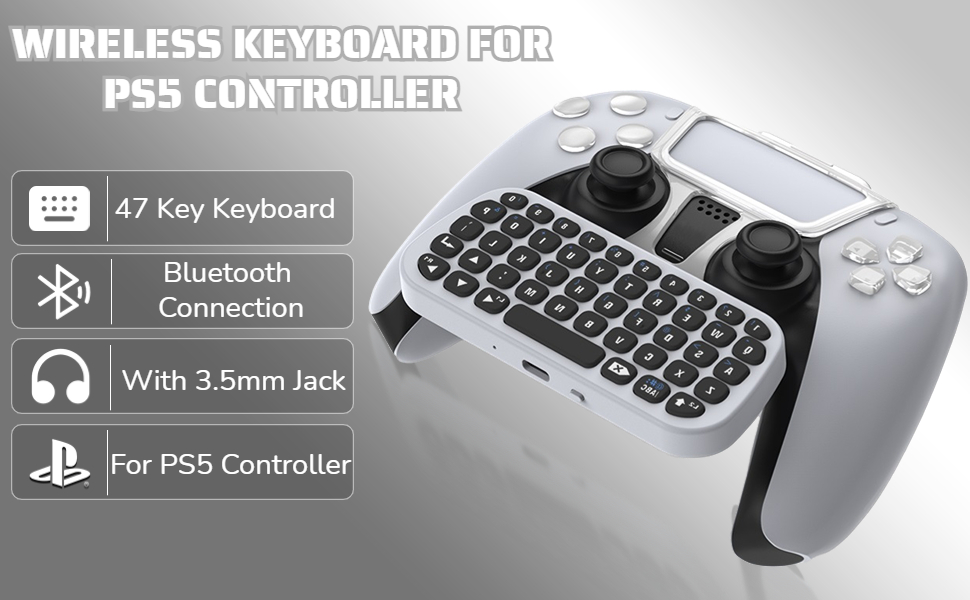 🎮[تصميم مريح] متوافق بشكل مثالي مع وحدة تحكم PS5. لوحة مفاتيح كاملة للعبة (47 مفتاحًا). مع مفاتيح الأرقام من 0 إلى 9 و26 مفتاحًا للحروف الإنجليزية وبعض المفاتيح المساعدة، من السهل جدًا والمريح إدخال رسائل البريد الإلكتروني والرسائل الفورية والدردشة الجماعية أثناء ممارسة الألعاب. إستمتع بلعبتك!