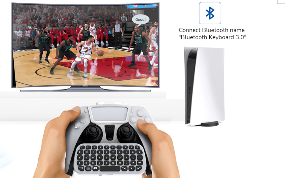 🎮【اتصالات لاسلكية】تستخدم لوحة مفاتيح وحدة التحكم لجهاز PS5 اتصال بروتوكول بلوتوث 3.0 اللاسلكي، اسم البلوتوث "لوحة مفاتيح بلوتوث 3.0"، النطاق اللاسلكي يصل إلى 26 قدمًا إلى 33 قدمًا. يمكن ربط لوحة الدردشة الخاصة بلوحة المفاتيح لجهاز ps5 بسهولة بوحدة تحكم ps5 لتعزيز الشعور. إذا لم تكن لوحة المفاتيح متصلة بالجهاز لفترة طويلة، فسيتم إيقاف تشغيل Bluetooth تلقائيًا لتقليل استهلاك الطاقة. إعادة التشغيل المطلوبة للاستخدام.