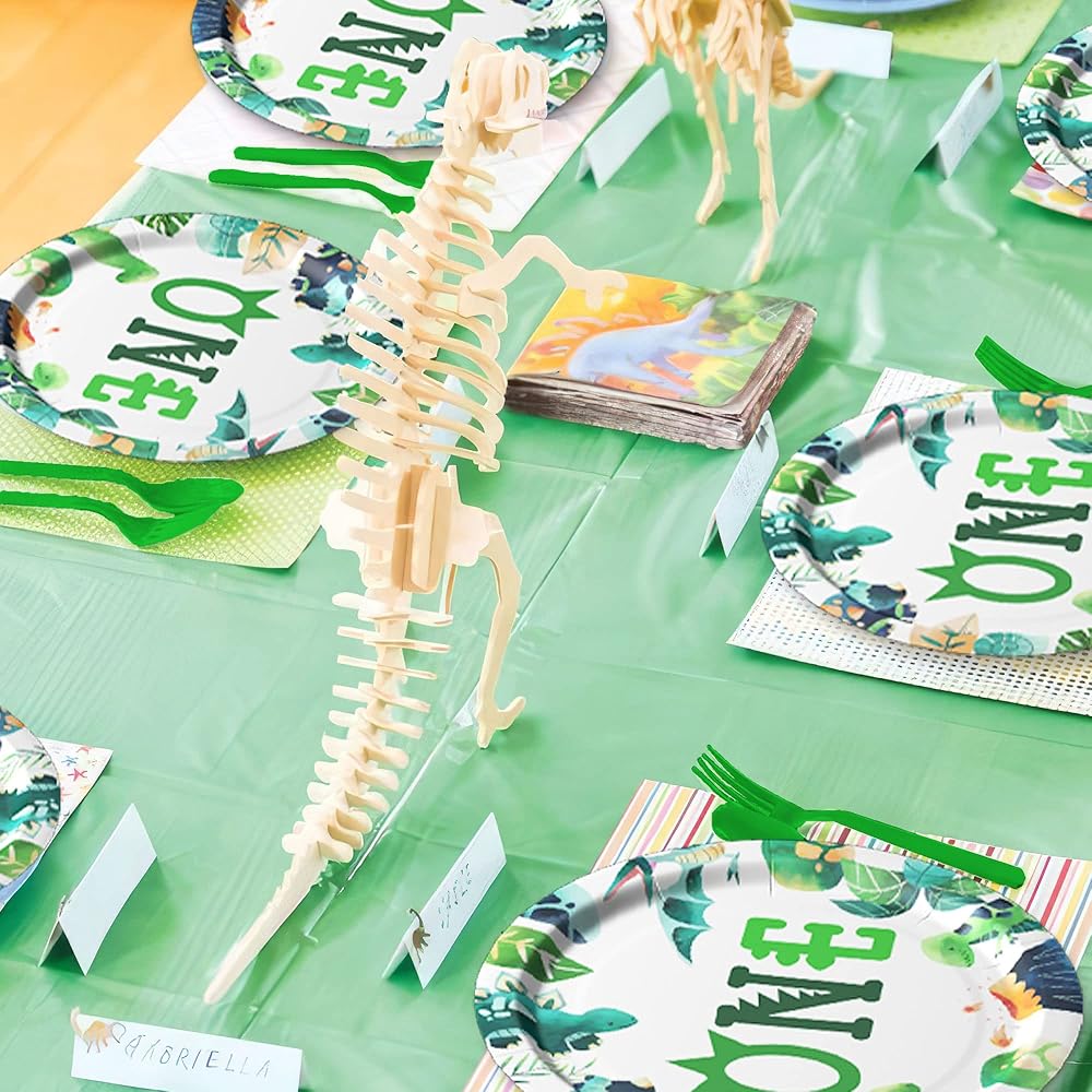 【Save Time】These baby dinosaur party decorations dinnerware for first birthday are perfect for your party. The disposable tableware and plastic tablecloth can save you from the hassle of cleaning after the party, you can enjoy more time with friends and family at this party