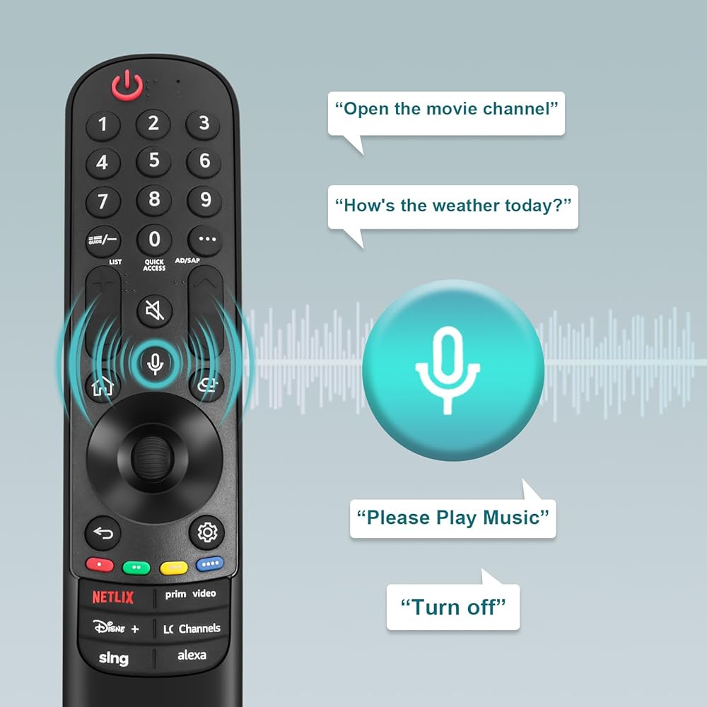 ❤【الميزات الرئيسية】جهاز التحكم LG Magic Remote 2023 المزود بالصوت والمؤشر سهل الاستخدام! أدوات تحكم بديهية في توجيه الماوس وعجلة التمرير، والوصول السريع إلى المحتوى المفضل لديك باستخدام أزرار تطبيق Netfix وPrme Video hotkey المعدة مسبقًا.