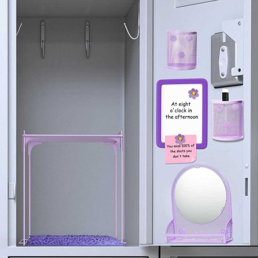 Keep your locker neat and tidy: Our cute locker accessories include the things you need to keep your locker neat and tidy. The collapsible locker shelf, storage box, and organizer to help you store tape, pens, pencils, and small scissors, keeping them within easy reach.