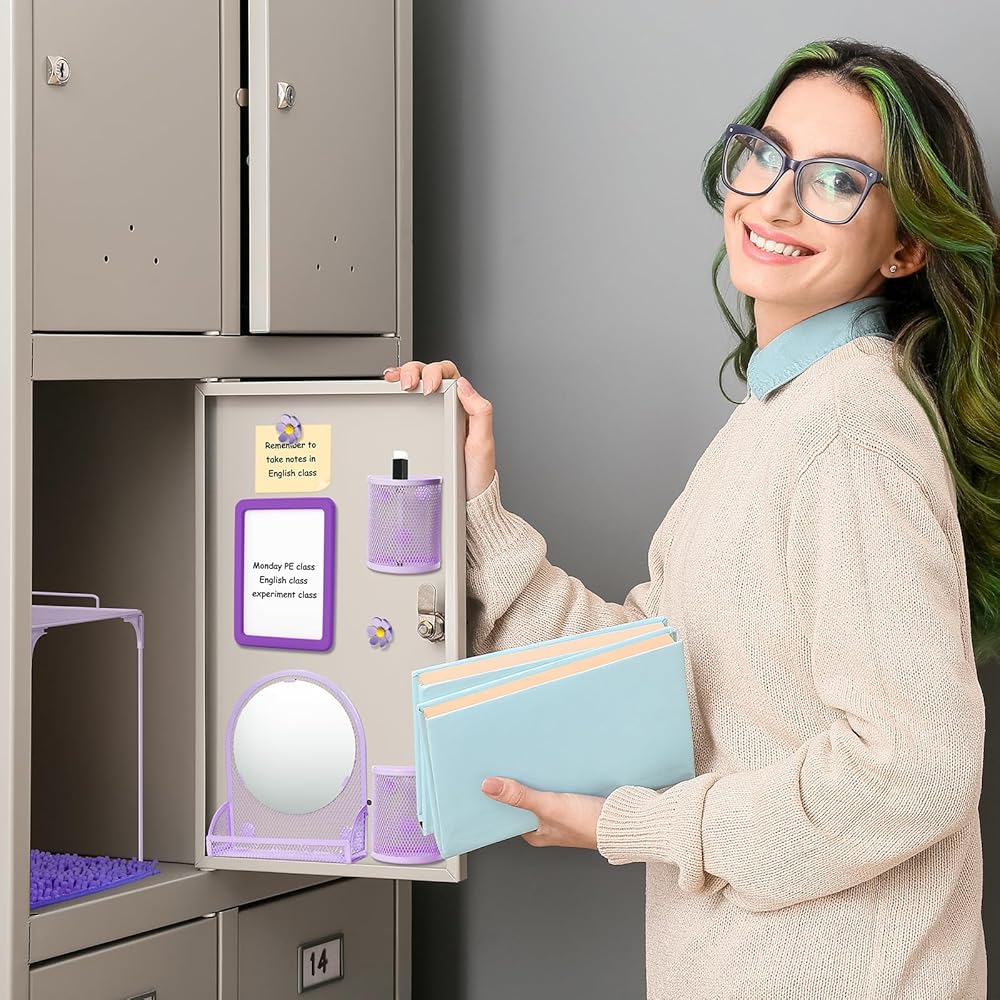 Decorate Your Locker: our locker accessories will help you decorate your locker, making inside tidy, you may choose to place them according to your preference; Magnets can help display photos and notes, organizer can help store your tapes, pens, pencils and small scissors, and the whiteboard allows you to write motivational words