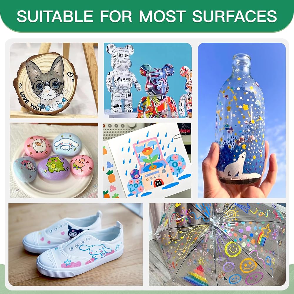 قلم طلاء متعدد الأغراض - توفر أقلام الأكريليك حبرًا ناعمًا لمجموعة متنوعة من الأسطح مثل الورق والبطاقات والمعادن والنقوش الصخرية والخشب والبلاستيك والقماش والنسيج والسيراميك والمزيد. سيحافظ الحبر المقاوم للبهتان على أعمالك الفنية وحرفك اليدوية حية. تتيح لك الاستخدامات المتعددة استخدام خيالك والحصول على إمكانيات إبداعية غير محدودة