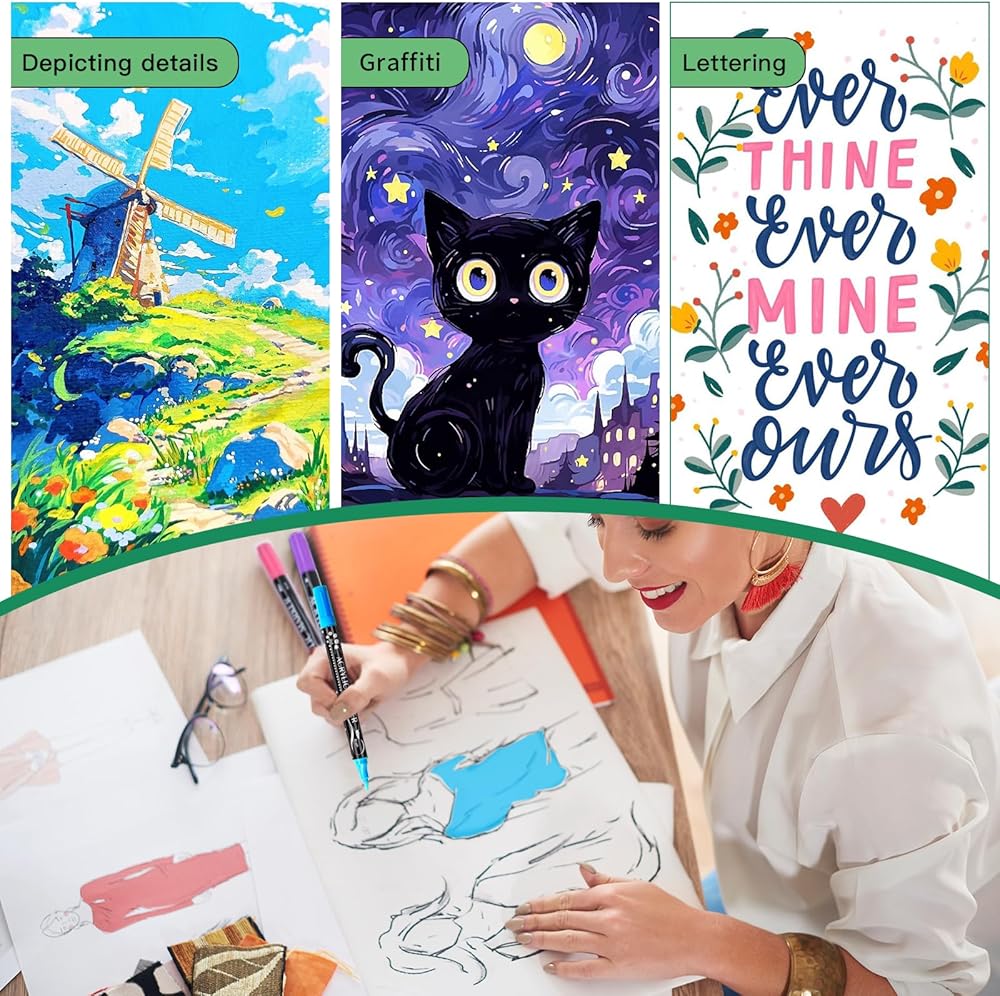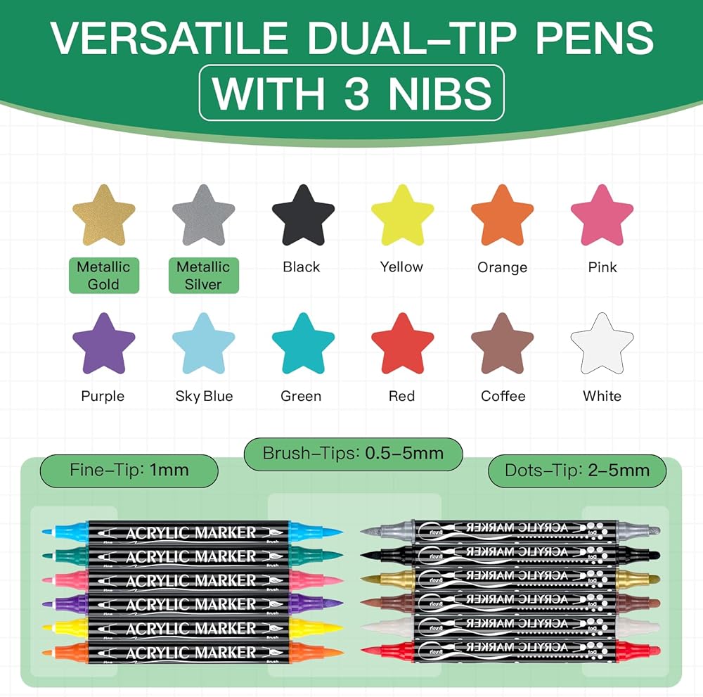 هدية مثالية للأشخاص المبدعين - مثالية للفنانين وطلاب الفنون والأطفال والمراهقين والبالغين الذين يعملون في مشاريع الفنون والحرف اليدوية. تعد هذه الأقلام هدية مثالية للأشقاء والبنات والحفيدات والأبناء والأطفال والأزواج في أعياد الميلاد وعيد الفصح والهالوين والكريسماس والمزيد. ألهم الإبداع واجلب السعادة لأحبائك باستخدام أقلام الطلاء الأكريليك متعددة الاستخدامات والملونة.