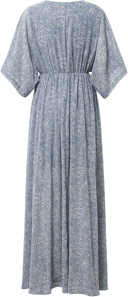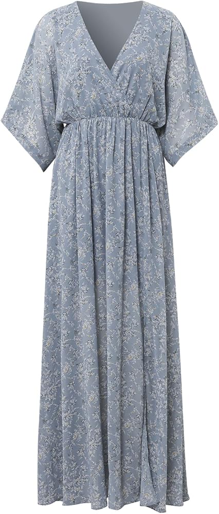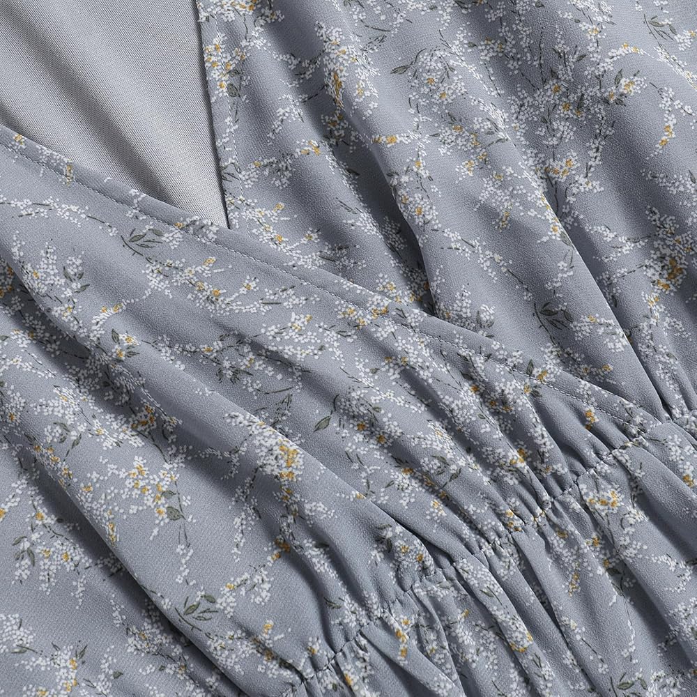 Detail description: This dress is eye-catching with its classic design and elegant style. The cross V-neck design not only shows the graceful curve of the neck, but also adds a touch of modernity. The long sleeve design adds a little dignity and elegance to this dress. The waist is designed with a waist, which outlines a slim waist line and shapes the beautiful figure of women. Exquisite floral prints are all over the skirt, adding romance and vitality to the whole dress.
