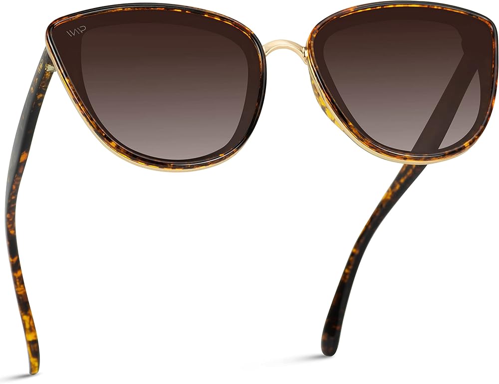 WearMe Pro - نظارة شمسية كلاسيكية للنساء بإطار معدني كبير الحجم وعدسات عاكسة أنيقة على شكل عين القطة
