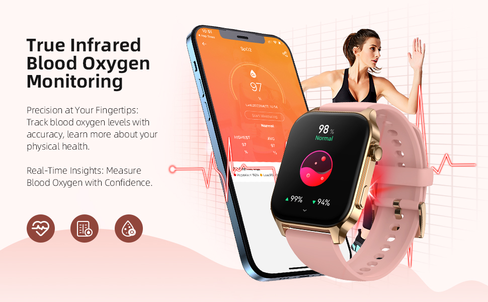 【مراقبة صحية شاملة】 - ارفع مستوى رؤيتك الصحية إلى مستوى جديد من خلال ميزات المراقبة المتقدمة لساعة SOUYIE الذكية. تتبع بدقة معدل ضربات القلب وضغط الدم ومستويات الأكسجين في الدم وأنماط النوم للبقاء على اطلاع بصحتك. احصل على تذكيرات في الوقت المناسب لتعديل نمط حياتك ودع ساعتنا ترافقك في رحلتك نحو صحة أفضل. توفر تقنية الأكسجين في الدم الحقيقي بالأشعة تحت الحمراء المتقدمة قراءات موثوقة وشاملة لمستوى الأكسجين. استمتع بالوظائف القوية لمراقبة الأكسجين في الدم بالأشعة تحت الحمراء الحقيقية وتحكم في رحلتك الصحية اليوم.