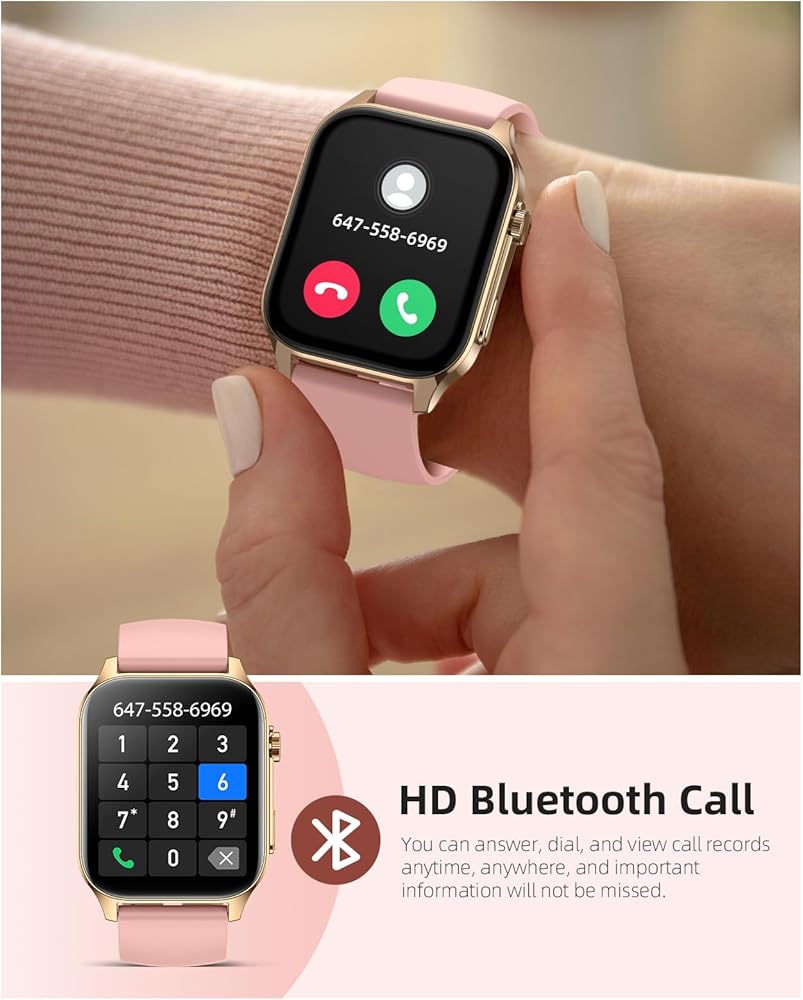 【مكالمة بلوتوث وإشعار ذكي】 - استمتع بتجربة الاتصال والراحة المطلقة من خلال مكالمات البلوتوث والمساعد الصوتي والإشعارات الذكية على ساعتنا. قم بإجراء واستقبال المكالمات مباشرة من معصمك دون عناء، مما يلغي الحاجة للوصول إلى هاتفك. ابق على اتصال أثناء التنقل، سواء كنت تقود السيارة أو تمارس الرياضة أو تقوم بمهام متعددة ببساطة. بالإضافة إلى ذلك، يمكنك تلقي إشعارات ذكية للرسائل القصيرة ورسائل البريد الإلكتروني وتنبيهات التطبيقات، مما يضمن عدم تفويت أي تحديث مهم. استمتع براحة البقاء على اتصال ومطلعًا، كل ذلك من راحة معصمك. ابق على اتصال، وابق على اطلاع، وتحكم في ساعتنا المليئة بالميزات.