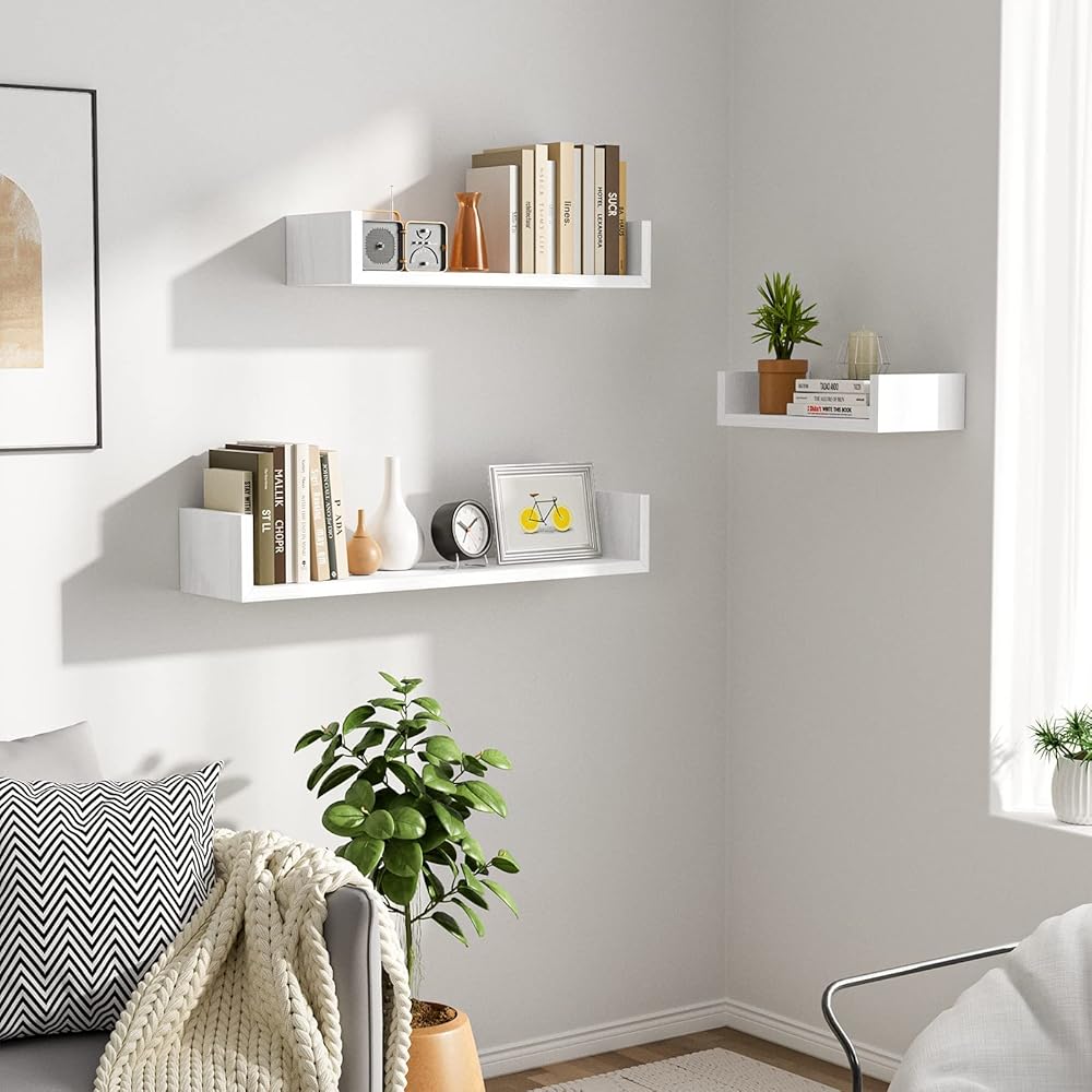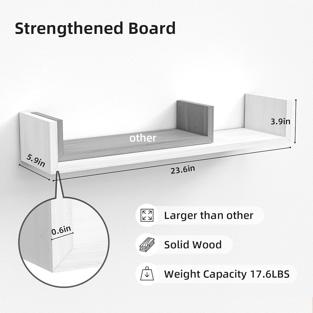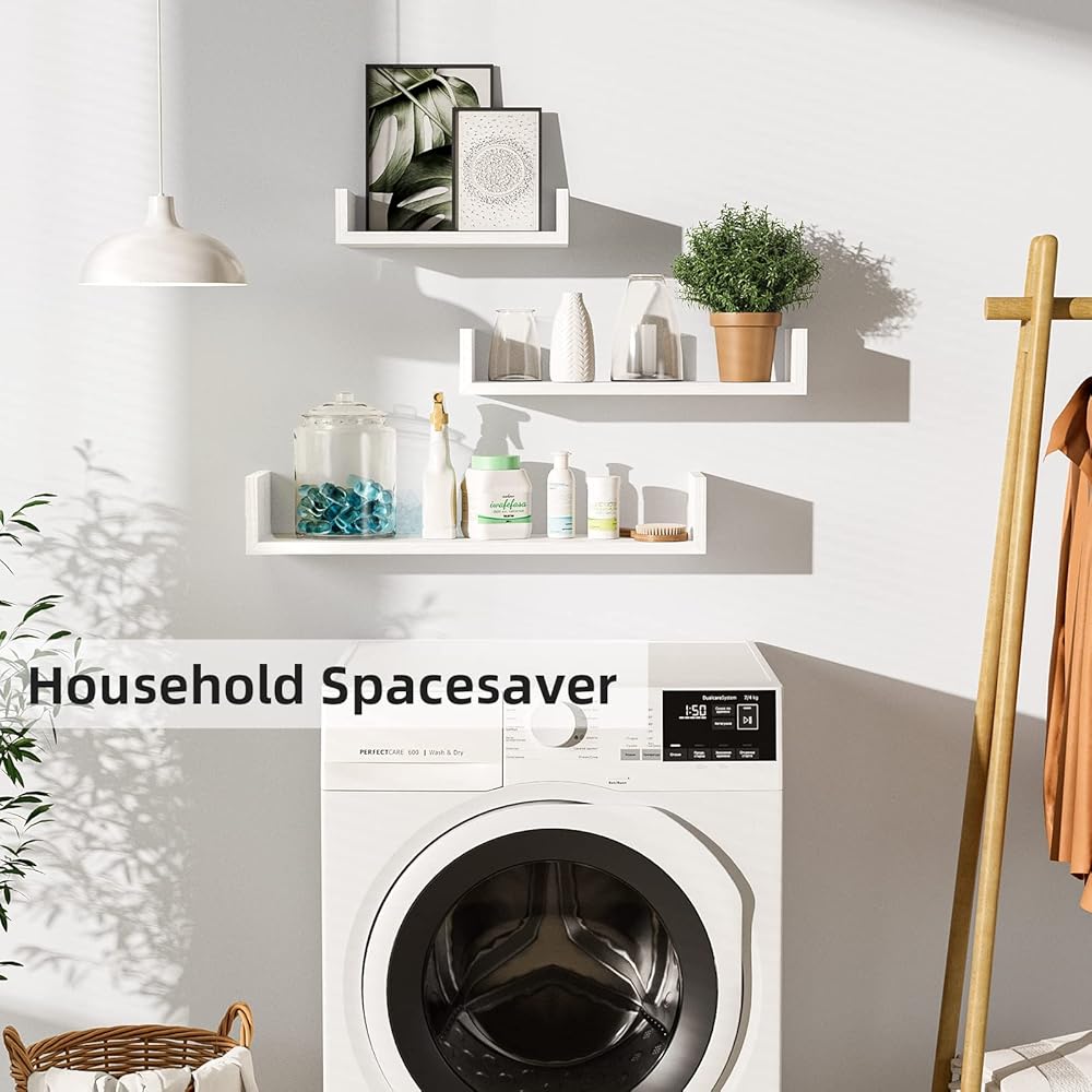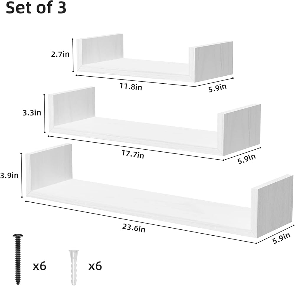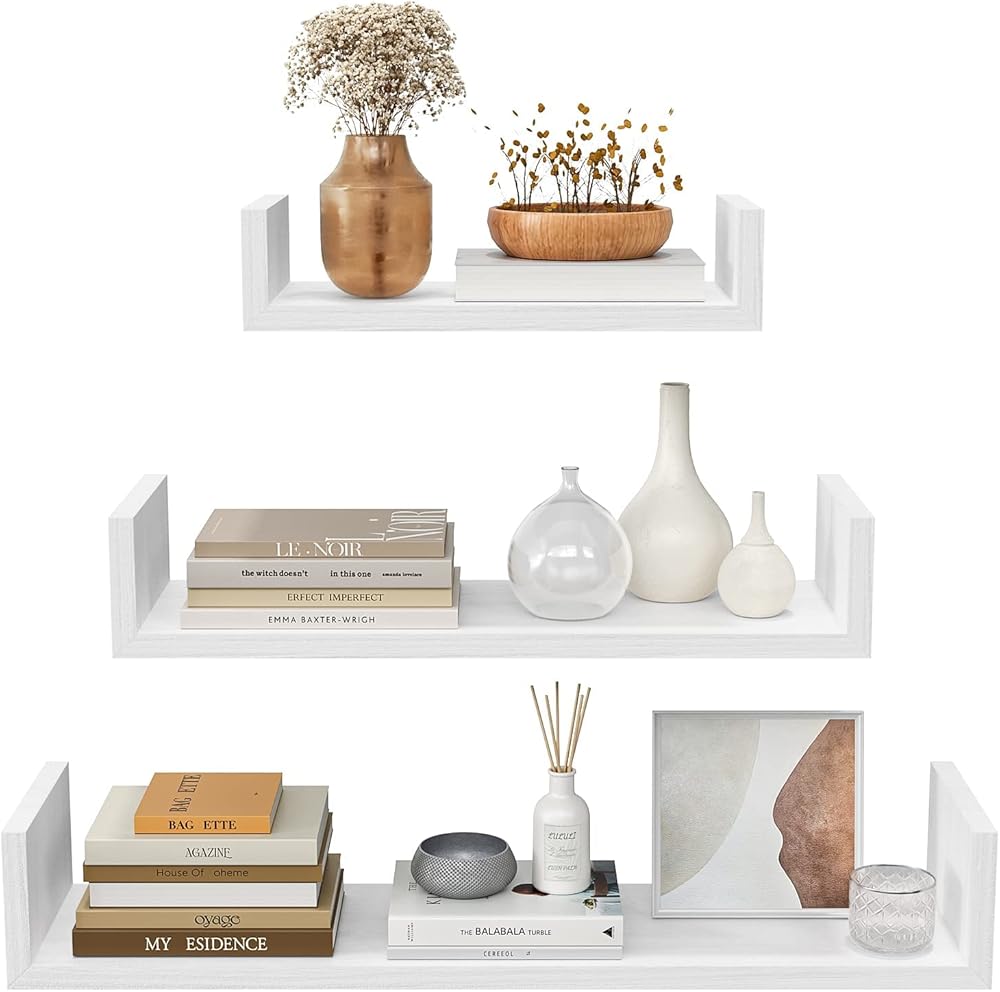 أرفف عائمة كبيرة جدًا من سريواتانا، مجموعة أرفف حائط حديثة مكونة من 3 أرفف مثبتة على الحائط للحمام وغرفة النوم وغرفة المعيشة والمطبخ والغسيل وديكور الحائط وحامل العرض (أبيض مغسول)