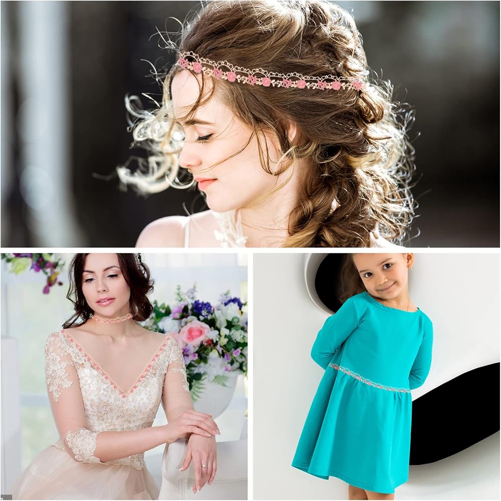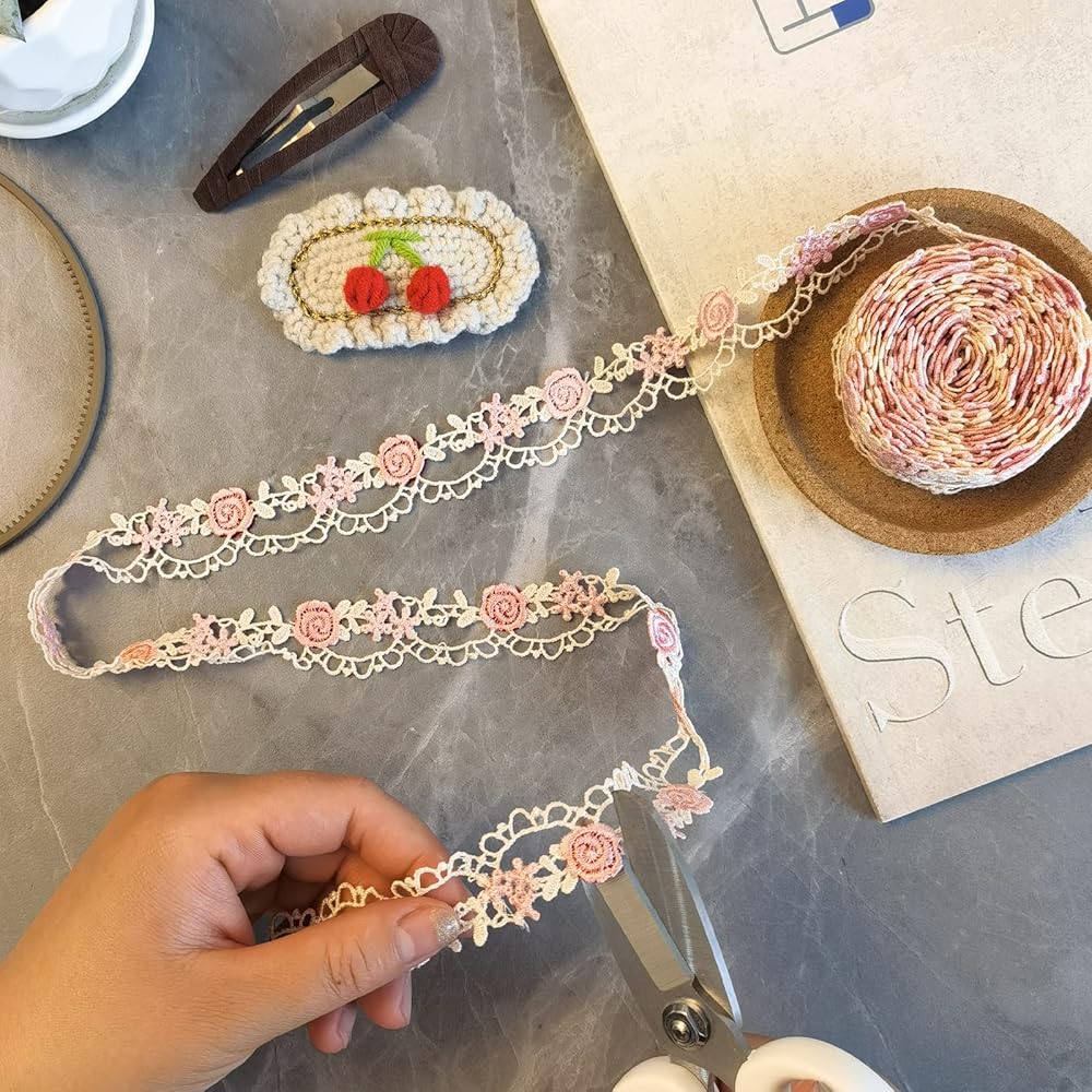 Wide Application: The Pink Rose Lace Trims are nice decorations for various craft projects during weddings, parties, birthday, Christmas, New Year, and other special festivals, such as Wedding Dresses, Girl's Hair Band Decoration, sweater, pillowcases, bags, T-shirt, jacket, dolls, vases, wedding bouquets, picture frames, scrapbooks, curtains, etc.