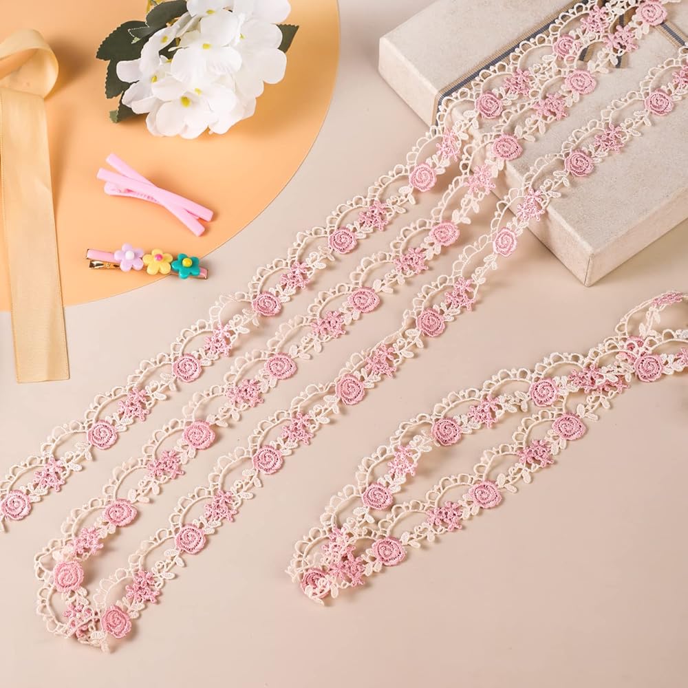 Package Included: You will receive 4 Yards Pink Rose Flower Lace Trim Ribbon in the package, and the diameter of each rose flower is 0.98inch/2.5cm, enough quantity to meet your daily DIY project needs.