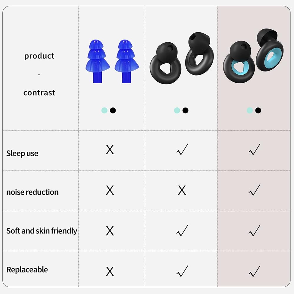 Multiple noise-cancelling design: The silicone ear plugs is made up of 3 parts, with a double-ring splicing structure at the ring for enhanced noise reduction, and a splicing structure with replaceable parts between the ring and the earbud, both of which effectively reduce sound transmission and effectively reduce noise. Can eliminate up to 27 decibels of noise and reduce sound to a comfortable level