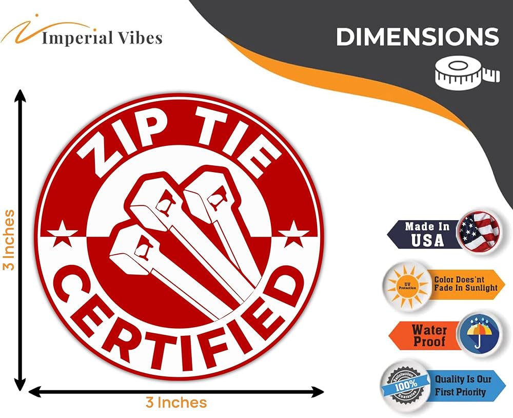 Our removable decal zip tie are printed on high-quality vinyl paper with a weather-resistant UV coating, so your zip tie certified funny decals can withstand the elements. This coating yields a tough, scratch-resistant surface that is extremely durable. Being made of high-quality waterproof and heat-resistant vinyl with strong adhesive strength, the zip tie decals will perfectly withstand the weather conditions of each season. 5 inches decal zip tie certified goes deep into the vinyl and has UV inhibitors to make sure your graphic lasts outdoors!
