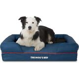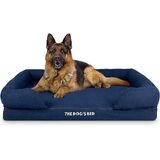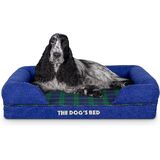 • Orthopedic memory foam waterproof dog bed. XL Dark Oxford Blue with Red Piping (Easy Clean Cover) 43.5 x 34 x 4 inches with 10 inch bolster sides. Solid 2” high density, orthopedic memory foam over a solid 2” base of high stability support foam with covers designed so that your bed fits your home decor seamlessly and your dog can stay close to the family