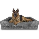 WE LOVE DOGS. Our mission: to produce beds that pass our Quality of Life Test: beds contributing to your dog's health, happiness and wellbeing, that help your dog to live its best life. Our design keeps your dog's joints young for longer. Pet guardians credit The Dog's Bed orthopedic with restoring their dog's mobility, vitality and helping them to sleep soundly. Dogs are family: our bed structure approximates the structure and support of a human orthopedic mattress. Our heat-sensitive mattress supports your dog's skeletal system, its correct alignment and protects their delicate joints. Quality is the keystone of our brand. To meet our high-quality standards and yours, we use high-grade materials to produce our bed. Quality is verified by 2 international 3rd-party companies, experts in inspection, testing, verification and certification with all dog sizes and dogs with conditions such as hip- and elbow dysplasia & patella luxation ensure that our bed enhances dogs' lives. With rigorous quality controls we ensure that our bed is of the highest quality and is delivered to you in perfect condition. The Dog's Bed orthopedic is for young dogs too. Getting your dog our bed early on is an excellent preventative measure to keep their joints youthful for longer. Many breeds are predisposed to conditions such as arthritis making their senior years painful. This immobility leads to isolation and a breakdown of the human-dog bond. The Dog's Bed orthopedic has been designed to be long-lasting. Your dog will be able to keep this bed for a long time, so we produce replacement covers at a fraction of the cost of replacing the whole bed. Easy-clean vs plush/fur covers? The easy-clean cover is for dogs who shed/drool or recovering from surgery and is easy to vacuum/wipe clean. The plush/fur cover is like a soft blanket.