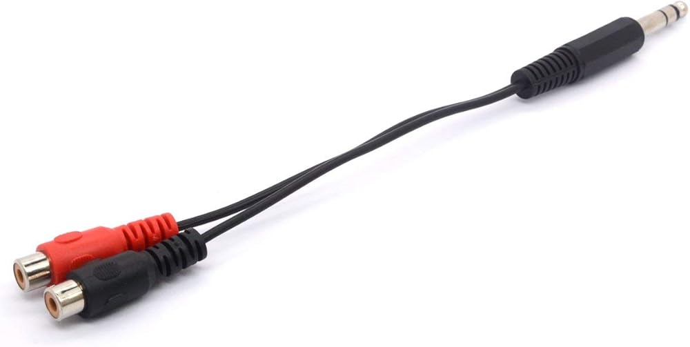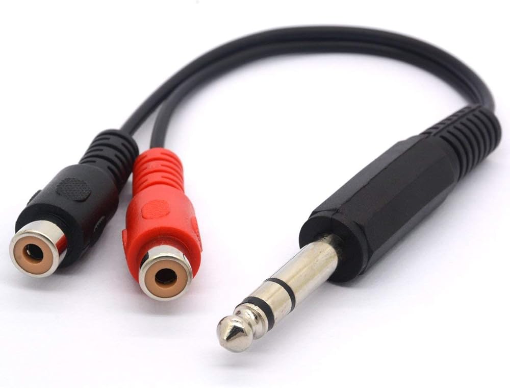 6.35mm male jack to 2 female RCA sockets cable can be connected to a stereo 6.35mm socket to splitte a 2 RCA female input or output depending on your equipment.
