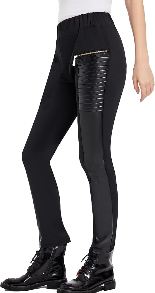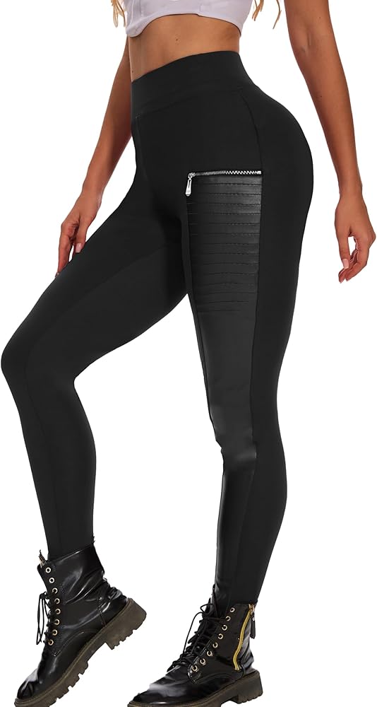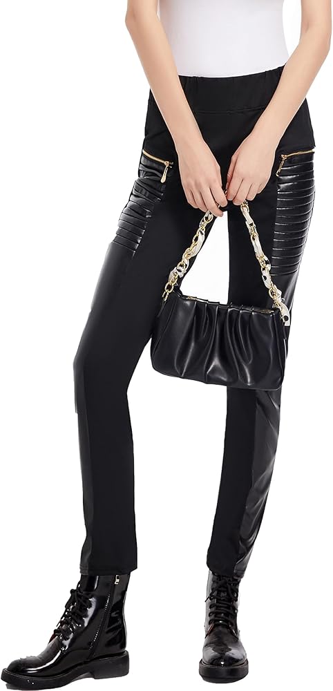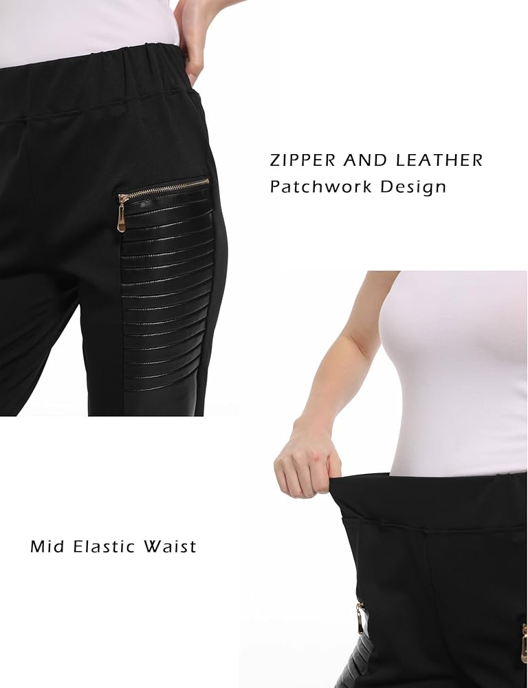 المزايا: يتميز السراويل الضيقة المصنوعة من الجلد الصناعي للنساء بتصميم مرقع بسحاب، مع خصر متوسط مرن، والسراويل المطوية التي تتميز بحزام الخصر توفر ضغطًا جيدًا