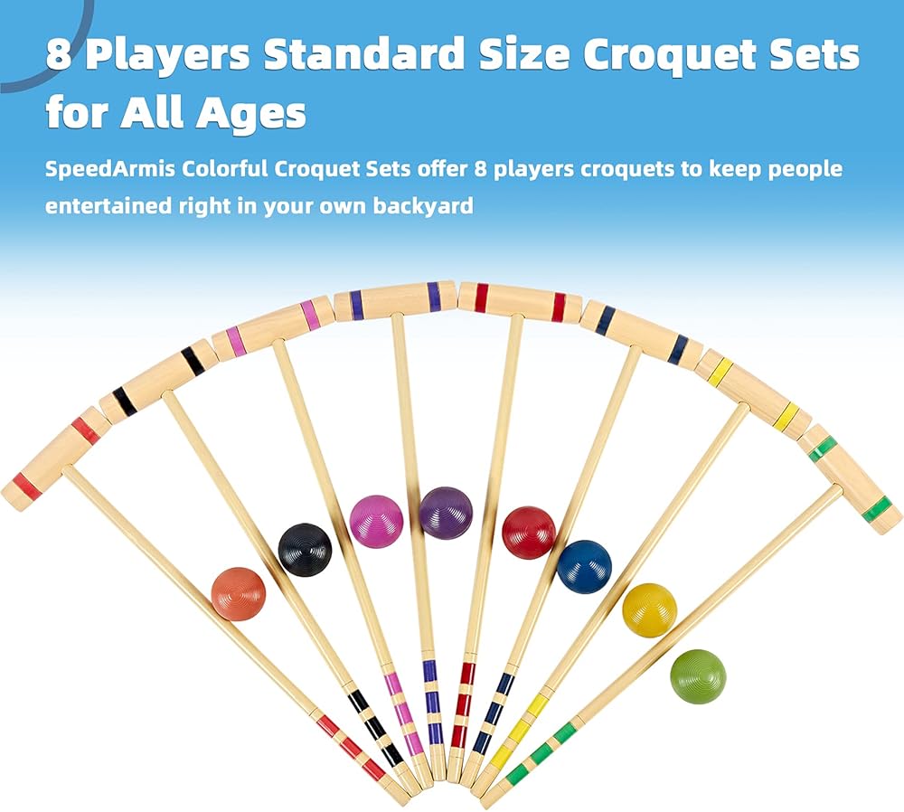 ضمان المرح والرضا الكلاسيكي: مجموعة الكروكيه SpeedArmis هي إضافة رائعة لأي مجموعة ألعاب في الفناء الخلفي. إنها أيضًا هدية مثالية لأي مناسبة. اختيار رائع كهدية لعيد الشكر، وعيد الميلاد، وعيد الأب، وعيد الأم، والكريسماس.