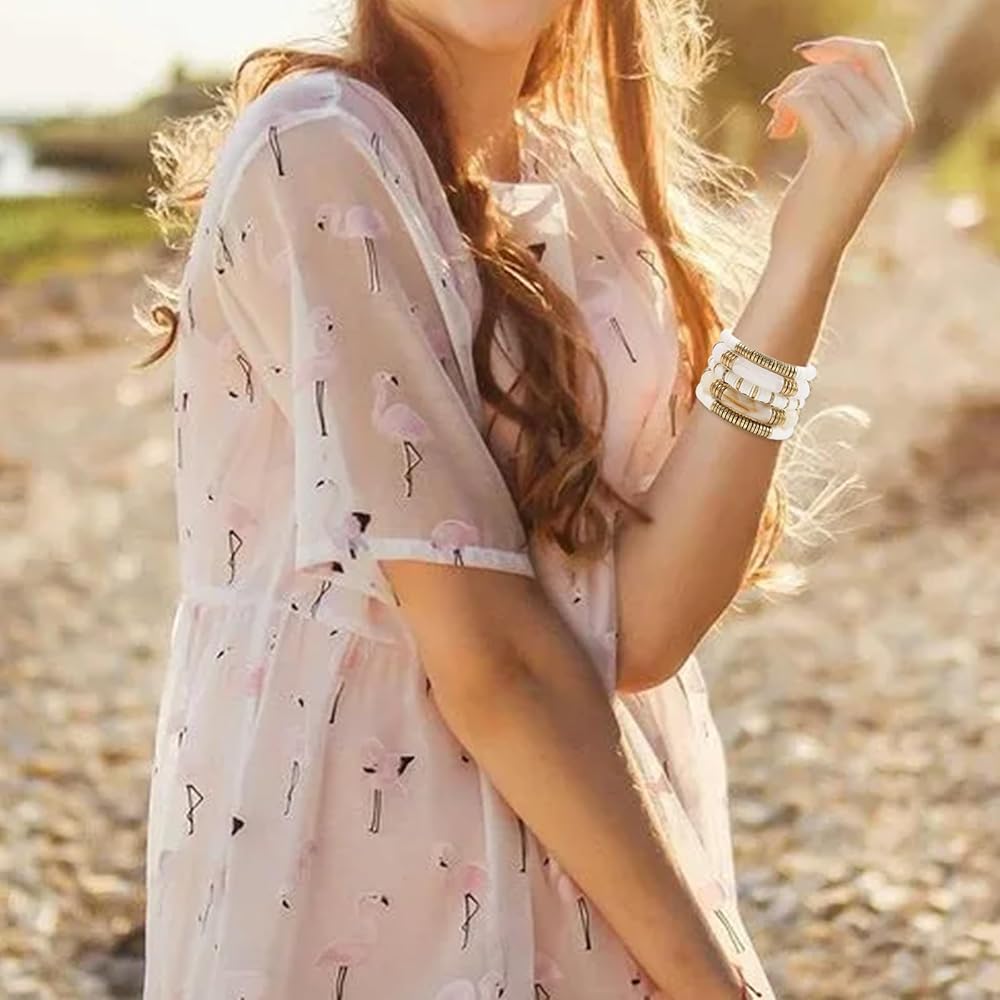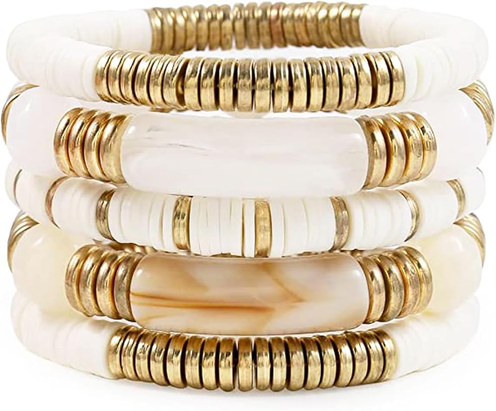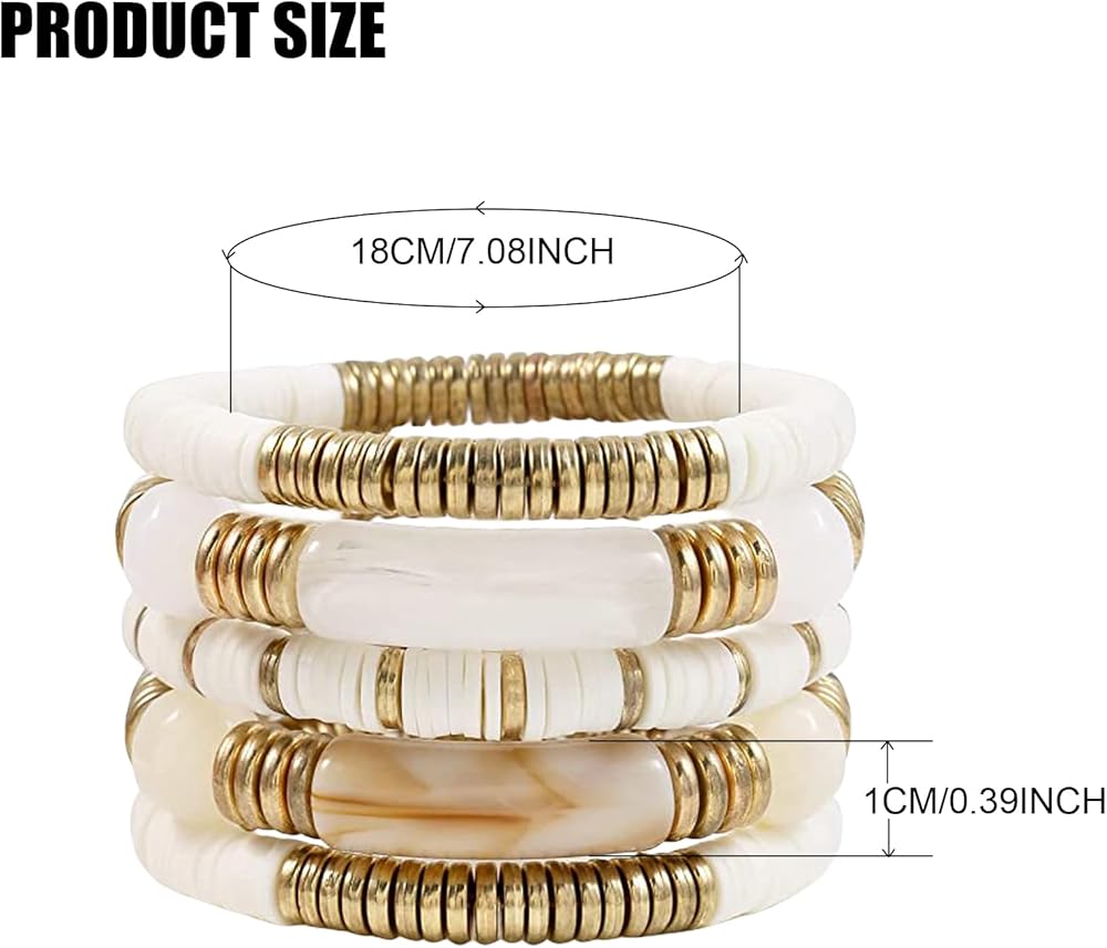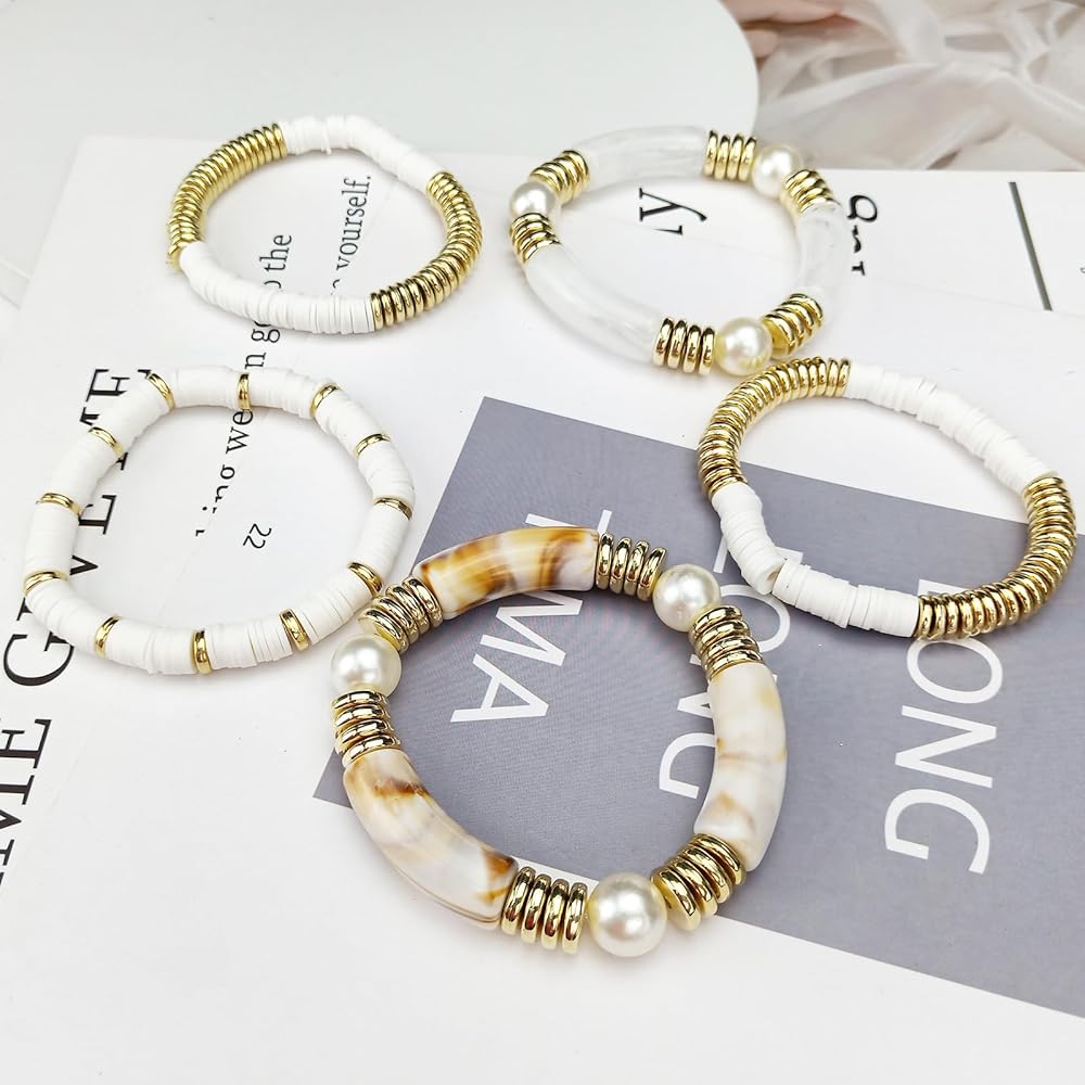 Bracelets Set Colorful Beaded Polymer Clay Pearl Stackable Charm Y2K Kidcore Summer Beach Bohemian Layering Bracelets Jewelry for Women Girls Teens