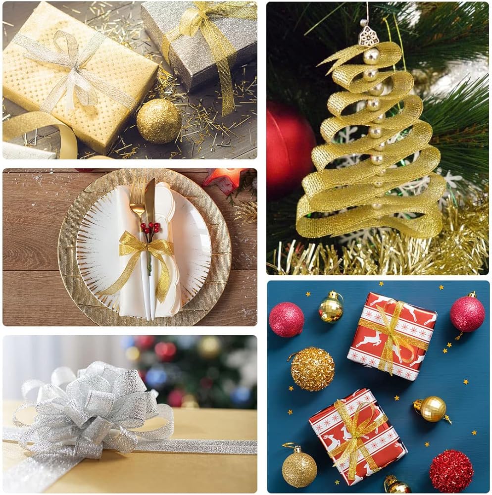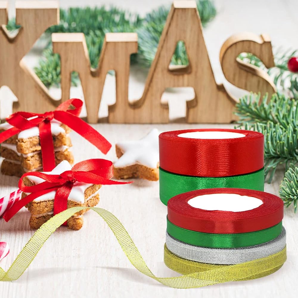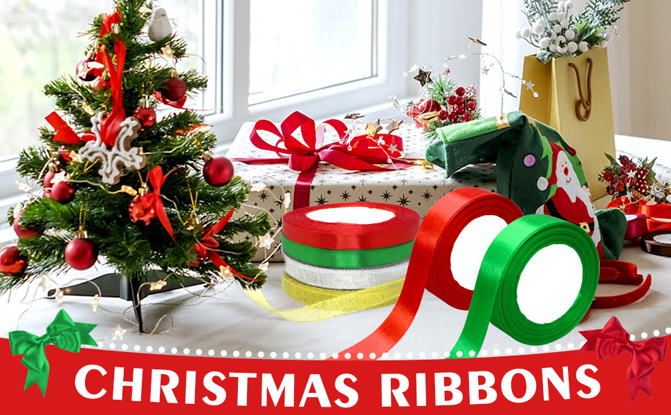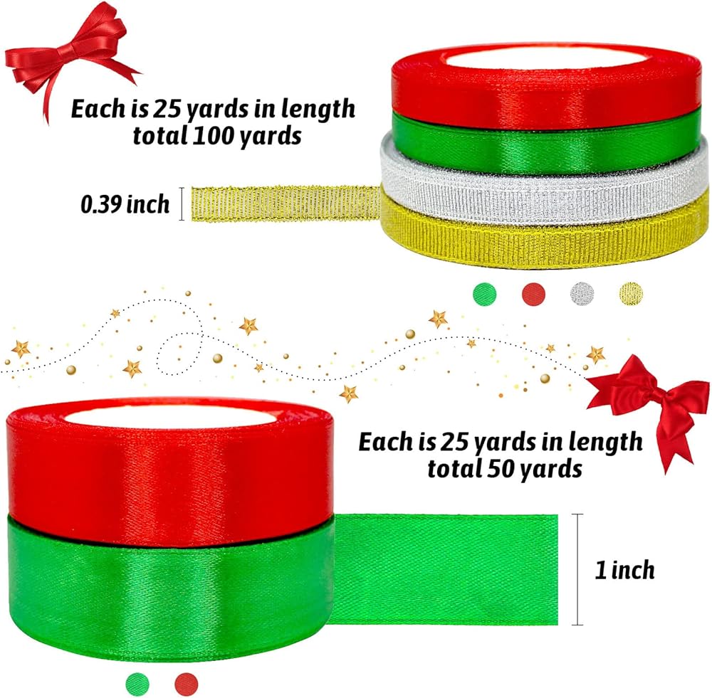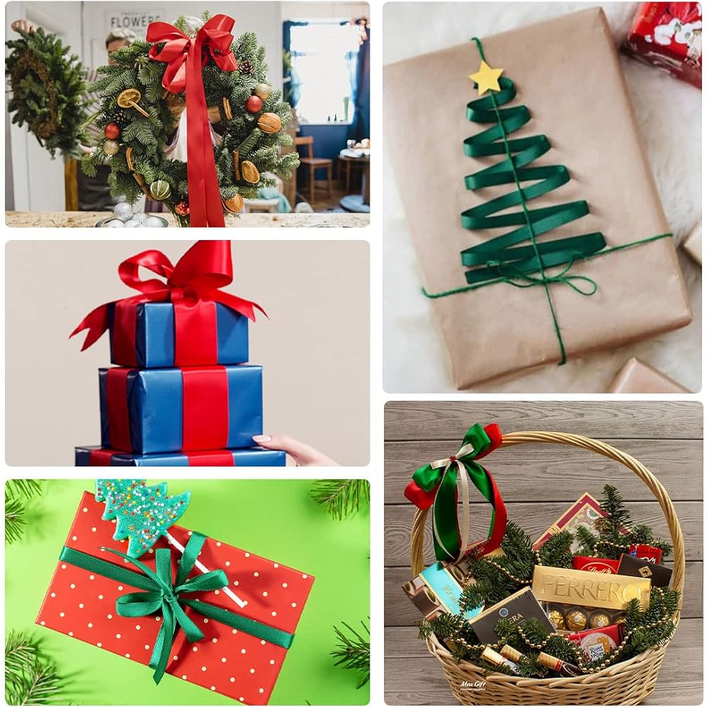 【مادة متينة】أشرطة معدنية لامعة مصنوعة من ألياف البوليستر عالية الجودة، مع لمعان معدني قوي، وخفيفة، ومرنة وأنيقة، وتدوم لفترة طويلة. أشرطة الساتان الحمراء والخضراء مصنوعة من مادة نسيج البوليستر، ناعمة وحريرية، بألوان زاهية. إنه خيار جيد لتغليف هدايا عيد الميلاد.
