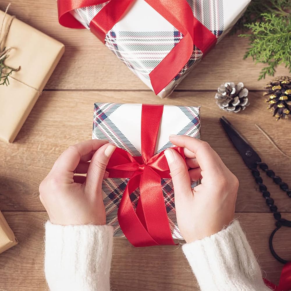 【سطح فاخر】وجه الشريط الأحمر لعيد الميلاد ناعم ولامع، والملمس الفاخر، جنبًا إلى جنب مع اللون الزاهي، يمكن أن يضيف الكثير من الأناقة إلى الأشياء التي تريد تزيينها ويمنحك الكثير من الثناء على حرفاتك. يمكن أيضًا زيادة الأجواء الاحتفالية الغنية.
