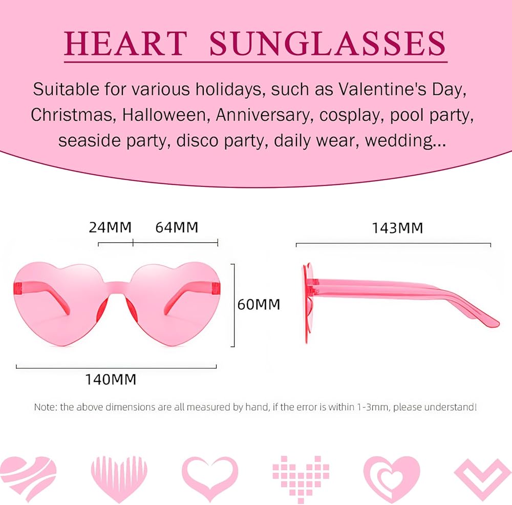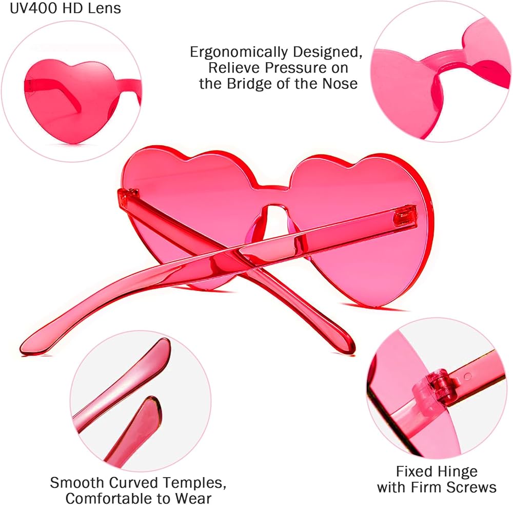 تصميم بسيط - المزيج المثالي بين النمط الكلاسيكي والأسلوب المستقبلي يخلق حجمًا كبيرًا من النظارات الشمسية على شكل قلب. يتم استخدام قطعة من مادة شفافة لإنشاء هيكل كامل للعدسة. استمتع بلحظة احتفالية خالية من العيوب وحافظ على الحب في عينيك طوال اليوم! أظهر حبك مع مجموعة نظارات القلب الملونة للغاية.