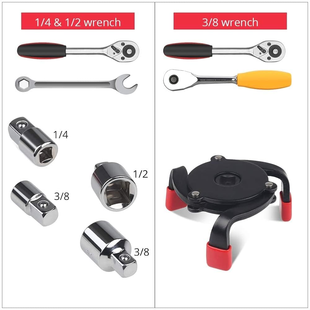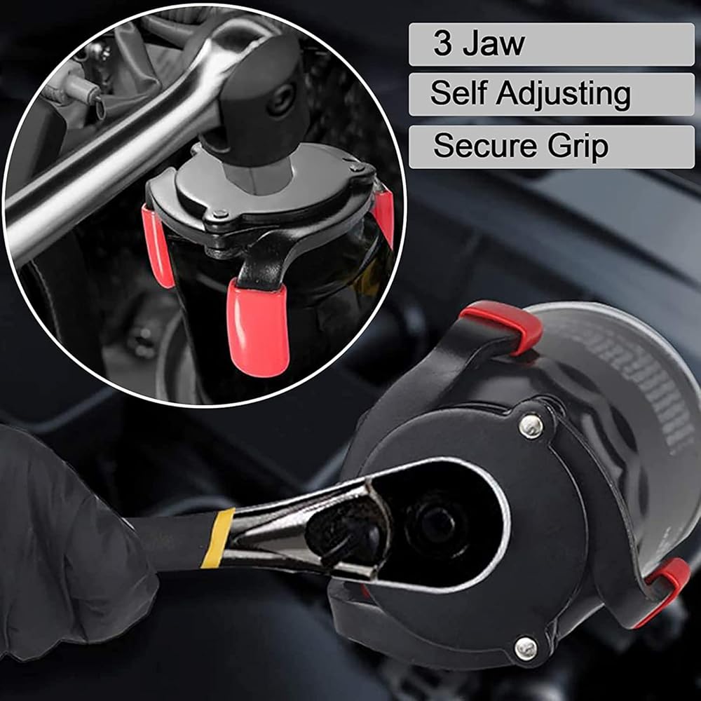 مفتاح ربط فلتر الزيت العالمي، مجموعة أدوات إزالة فلتر الزيت 3 فك قابلة للتعديل من 2.4 بوصة إلى 3.8 بوصة، تعمل مع مقابس محرك السقاطة 3/8 بوصة