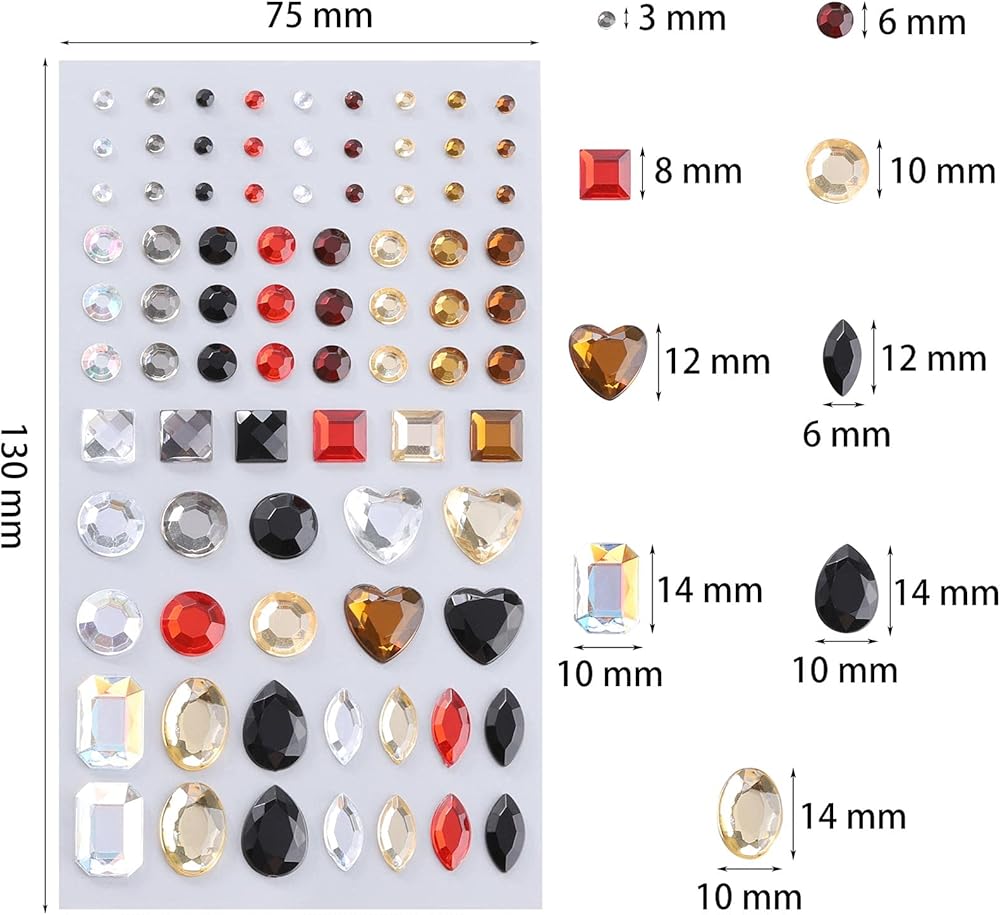 • Self-adhesive gem stickers needn't glue , easy to stick on your crafts and projects, will not leave marks when peeling off.