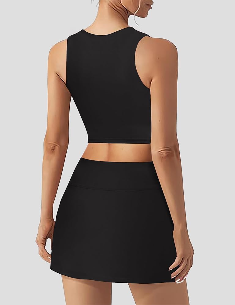 قميص بدون أكمام مثير: يحتوي الجزء العلوي في مجموعة التنورة المكونة من قطعتين على وسادات حمالة صدر مدمجة قابلة للإزالة لتوفير الراحة والتهوية والدعم. خط العنق المربع والتصميم بدون أكمام هو أحدث صيحات الموضة، مما يضيف الأناقة والجاذبية إلى ملابس النوادي للسيدات. ارتدي هذه القمصان القصيرة المثيرة مع تنانير عالية الخصر لإظهار شخصيتك المثيرة، مثالية للارتداء ليلاً أو نهارًا.