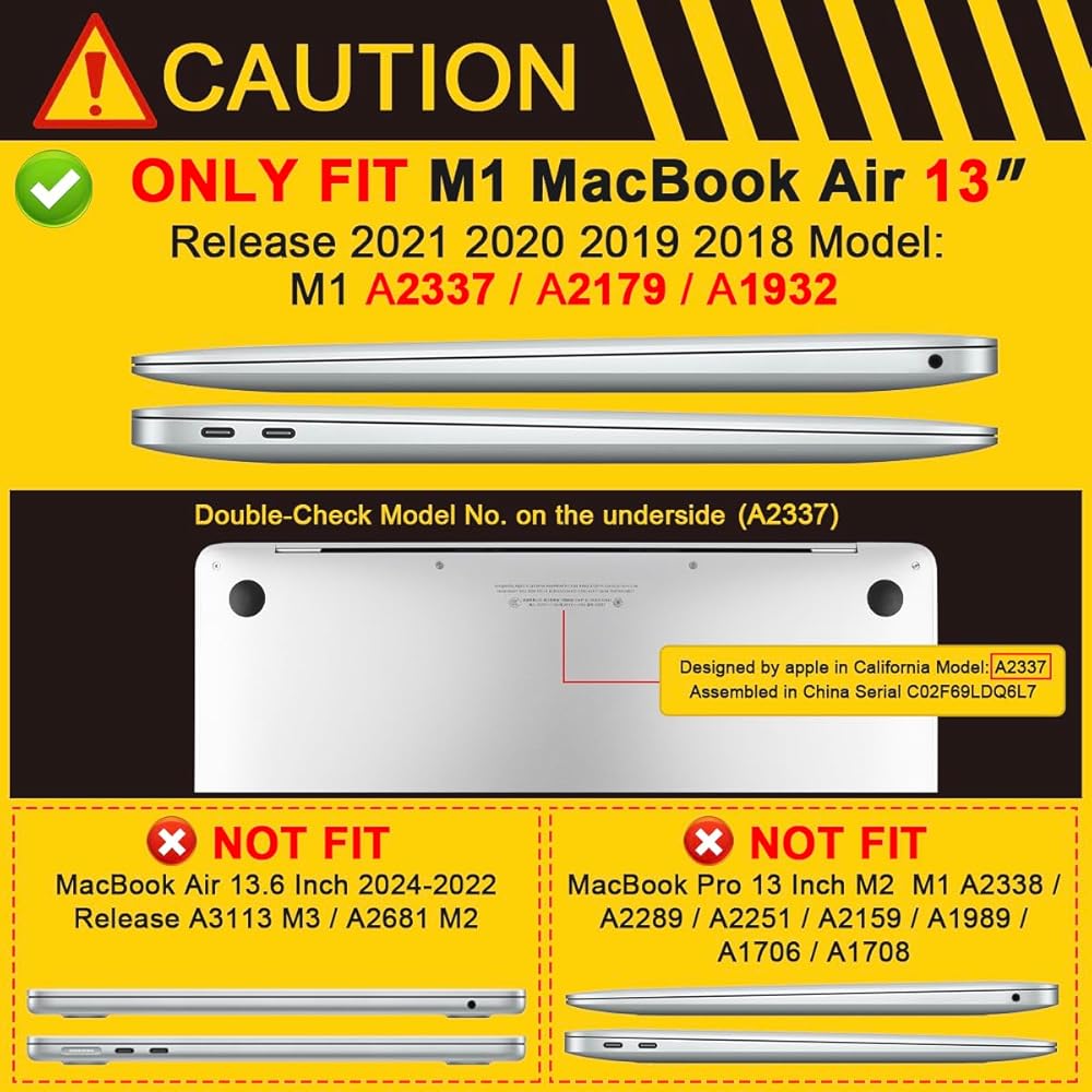 • 【تصميم نحيف وخفيف الوزن】- توفر هذه الحافظة بنية نحيفة وخفيفة الوزن مصممة خصيصًا لجهاز M1 MacBook Air 13 بوصة إصدار 2021-2018 (الطراز: M1 A2337/A2179/A1932). قم بحماية جهازك دون إضافة كميات كبيرة غير ضرورية. لن يناسب أي نماذج أخرى غير مذكورة.