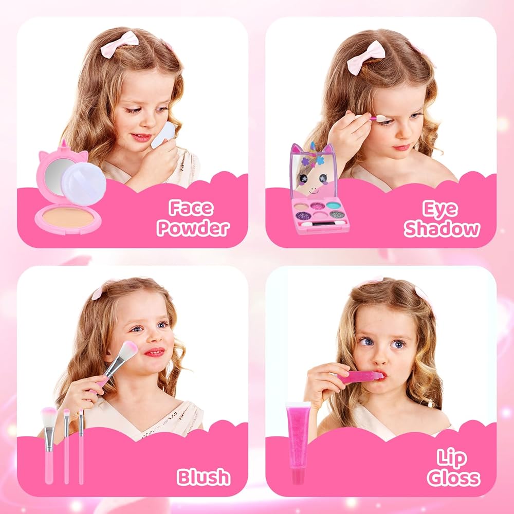• 【آمنة وغير سامة】- تم تصميم مجموعة المكياج الخاصة بنا خصيصًا للأطفال، مما يضمن سلامتهم واستمتاعهم. جميع المنتجات غير سامة ولطيفة على البشرة ويمكن غسلها بسهولة. الآن يمكن لطفلك الاستمتاع بتجربة المكياج بطريقة خالية من القلق.