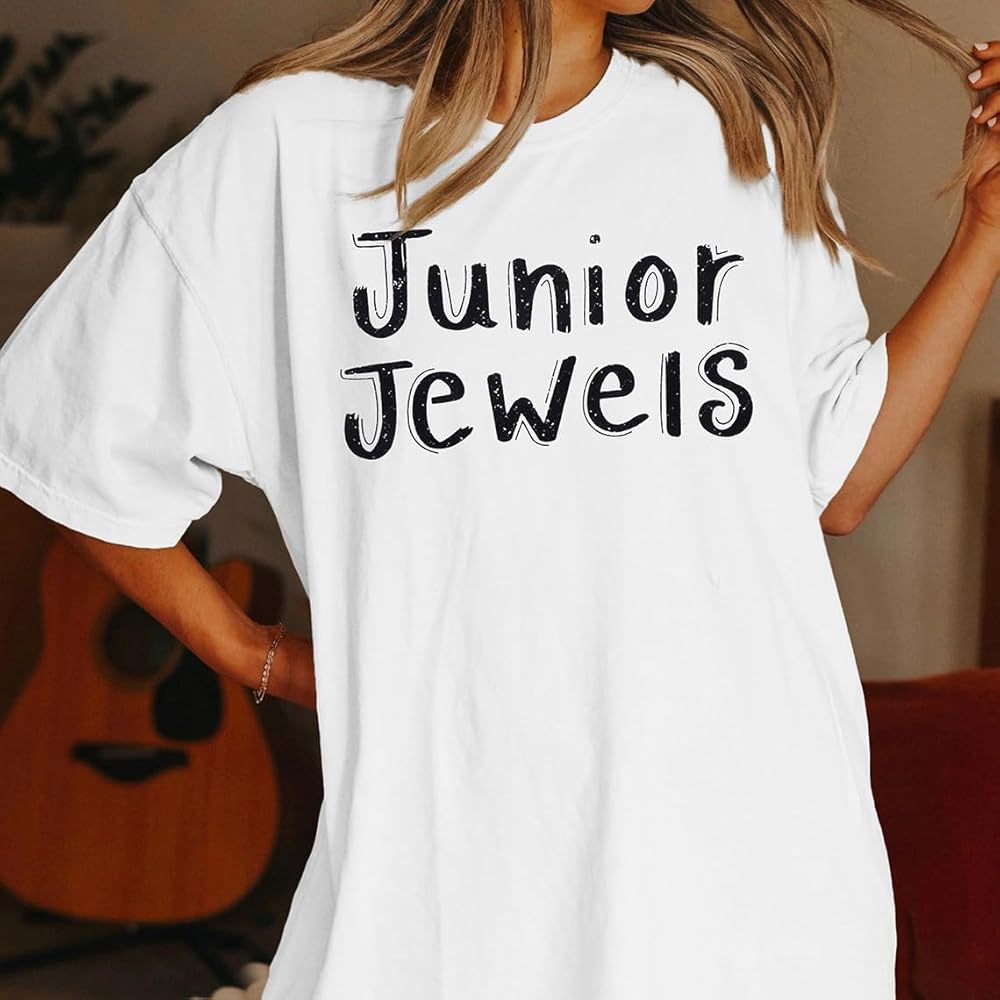 المميزات: أظهر حبك لموسيقى البوب مع قميص Junior Jewels كبير الحجم، المصمم لمحبي الموسيقى ومحبي الموسيقى على حد سواء. عزز تجربة حفلتك الموسيقية وتميز بين الجميع مع هذا القميص الأيقوني.