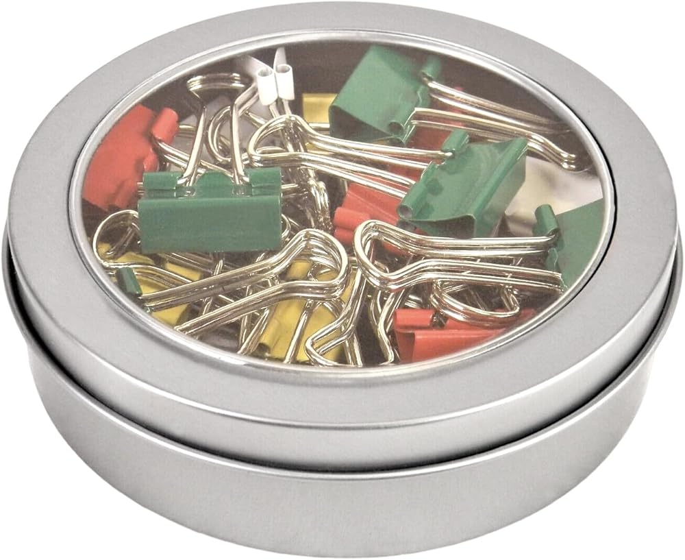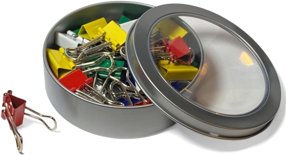 MAGNETIC ROUND TIN BOX: The clips come in a sleek and durable magnetic tin, providing a convenient storage solution for your desk or drawer without worrying about losing them. The tin features a see-thru cover, allowing for quick identification of the color and quantity of clips inside
