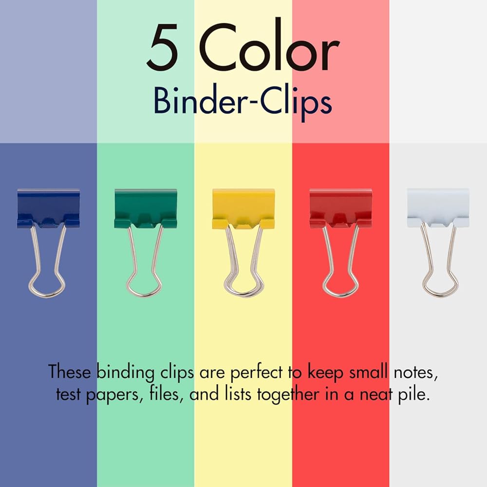 MULTI-COLOR: These high-quality metal clips are available in five vibrant colors - blue, green, red, white, and yellow - for easy color coding or adding a touch of personality to your workspace