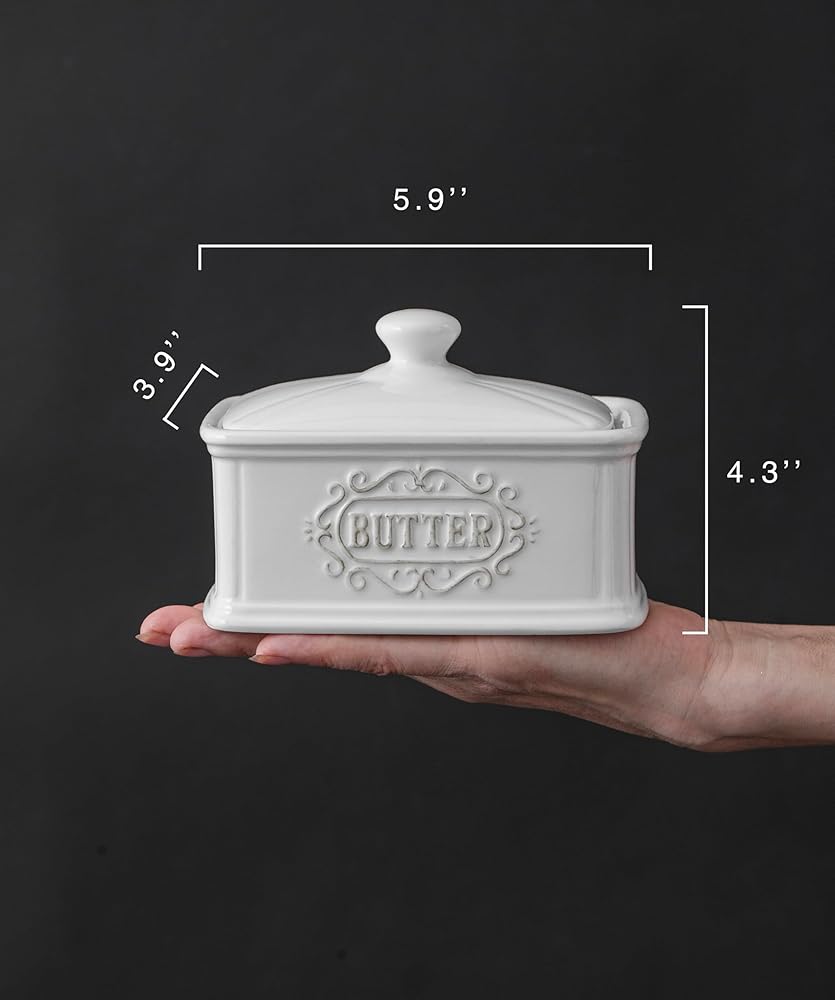 طبق زبدة سيراميك كبير مطلي يدويًا مع غطاء صندوق زبدة LargeTAWCHES زبدة حارس الفخار للكونترتوب وحامل الزبدة ديكور المطبخ المزرعة العتيق زبدة الزبدة