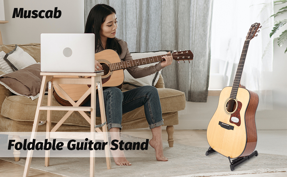 حامل جيتار، حامل أرضية جيتار Muscab المحمول مع سيليكون غير قابل للانزلاق، حامل جيتار إطاري للجيتار الصوتي/الكهربائي/الكلاسيكي والمزيد