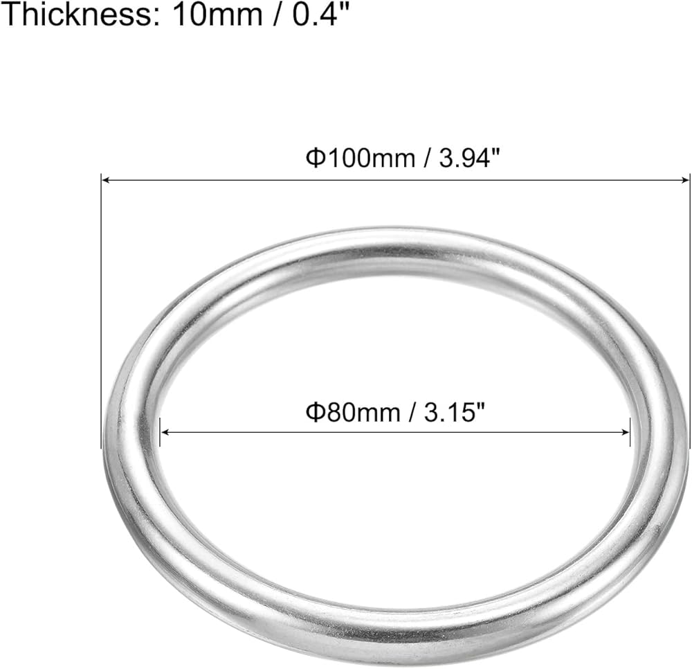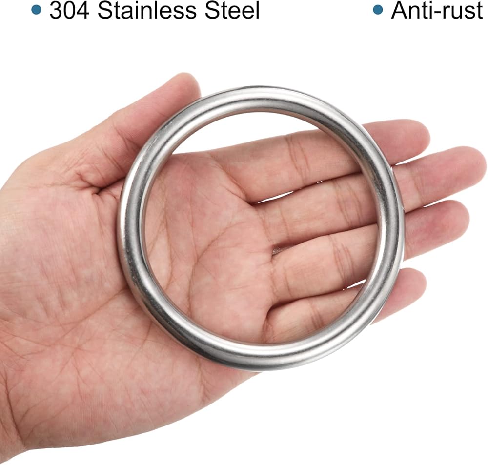 This silver metal ring is a seamless, welded, multi-purpose stainless steel ring that is smooth and round. It is perfect for hanging flower baskets, crafts, and buckles, and can be used in a variety of different applications. The ring is made of high-quality stainless steel, which is durable and resistant to corrosion. It is easy to install and use, and can be used in a variety of different settings. The ring is 4 inches in diameter, and is made of silver metal. It is a versatile and useful tool that can be used in a variety of different applications.