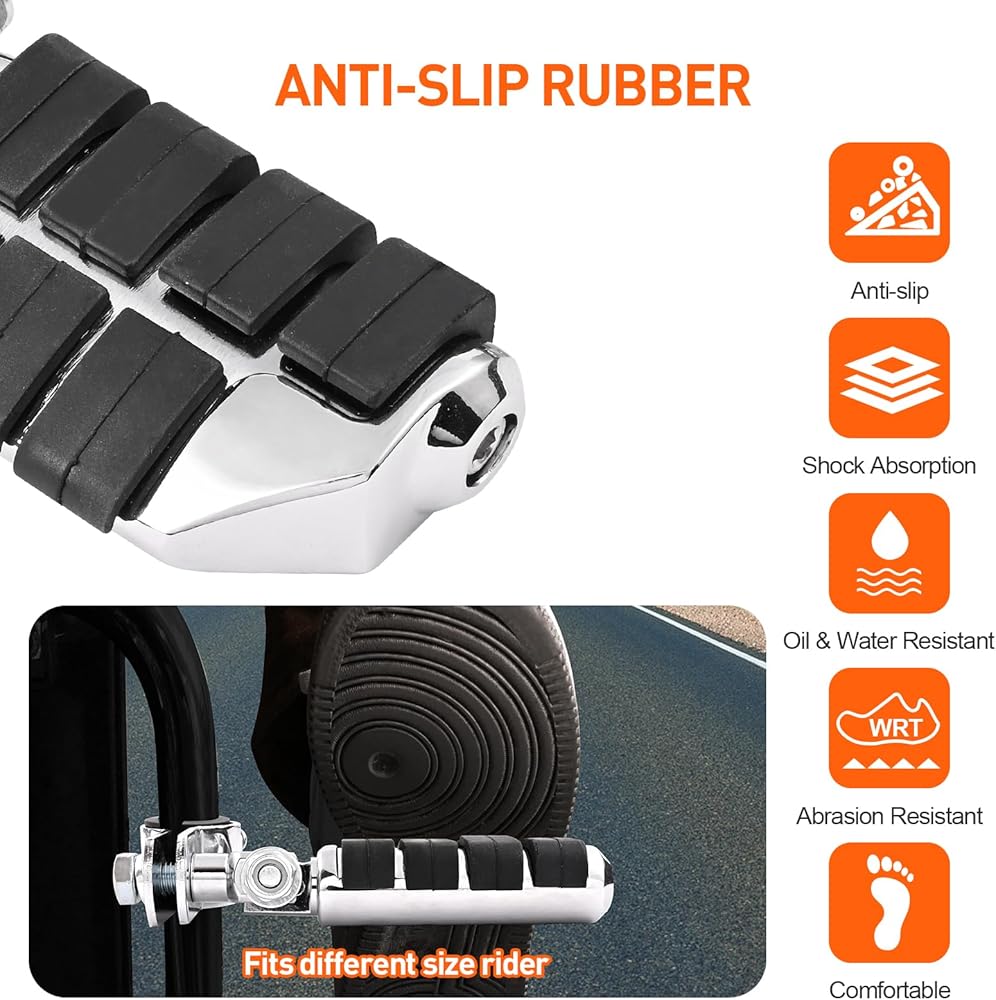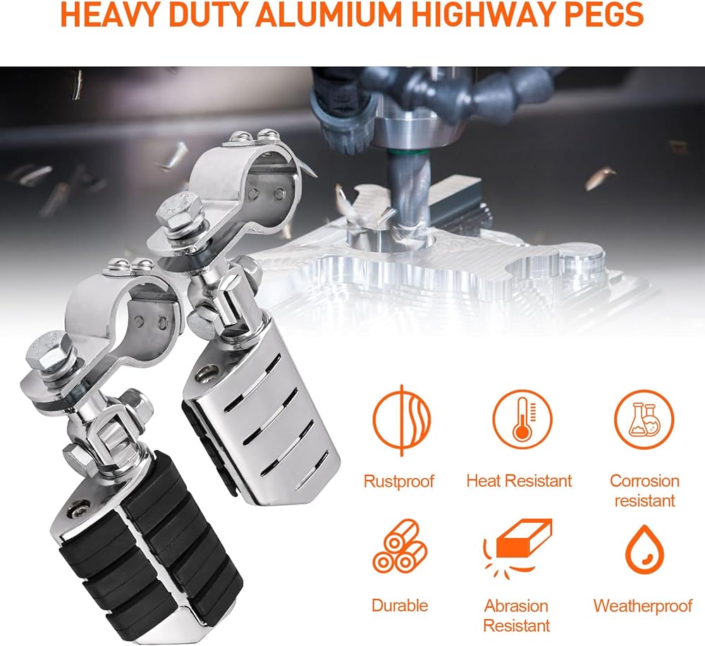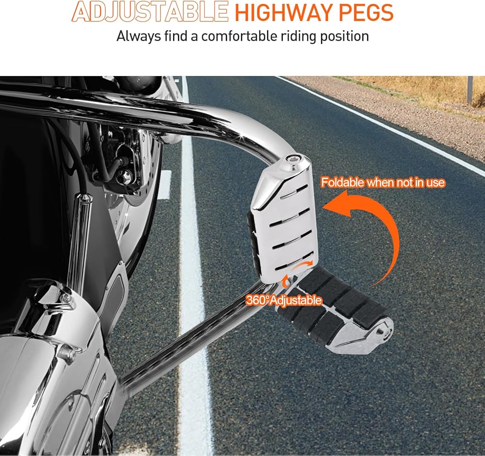 أوتاد الطرق السريعة القابلة للتعديل بالكامل لدراجة نارية هارلي ◀ ▶ ستوفر أوتاد القدم على الطرق السريعة الخاصة بنا مكانًا يمكنك من خلاله إمالة قدميك إلى الخارج، وتوفر الدعم لقدميك أثناء الركوب لمسافات طويلة، مما يجعل ركوبك يشعر بمزيد من الراحة. مشبك التثبيت قابل للتعديل بالكامل بزاوية 360 درجة ويمسك حارس المحرك بقوة، كما أن تصميم القفل يؤمن الوتد بالزاوية المرغوبة لركوب مريح، ويمكنك دائمًا العثور على الزاوية الأكثر راحة لوضعك.
